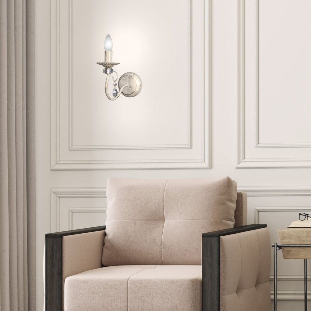 Эта бра воплощает в себе лучшие черты неоклассического стиля, сочетая в себе элементы прованса и классики. Хрустальные подвески и вставки создают игру света и тени, подчеркивая красоту пространства. Белый цвет с патиной золота придает бра элегантный и благородный вид, идеально вписываясь в различные интерьерные решения.