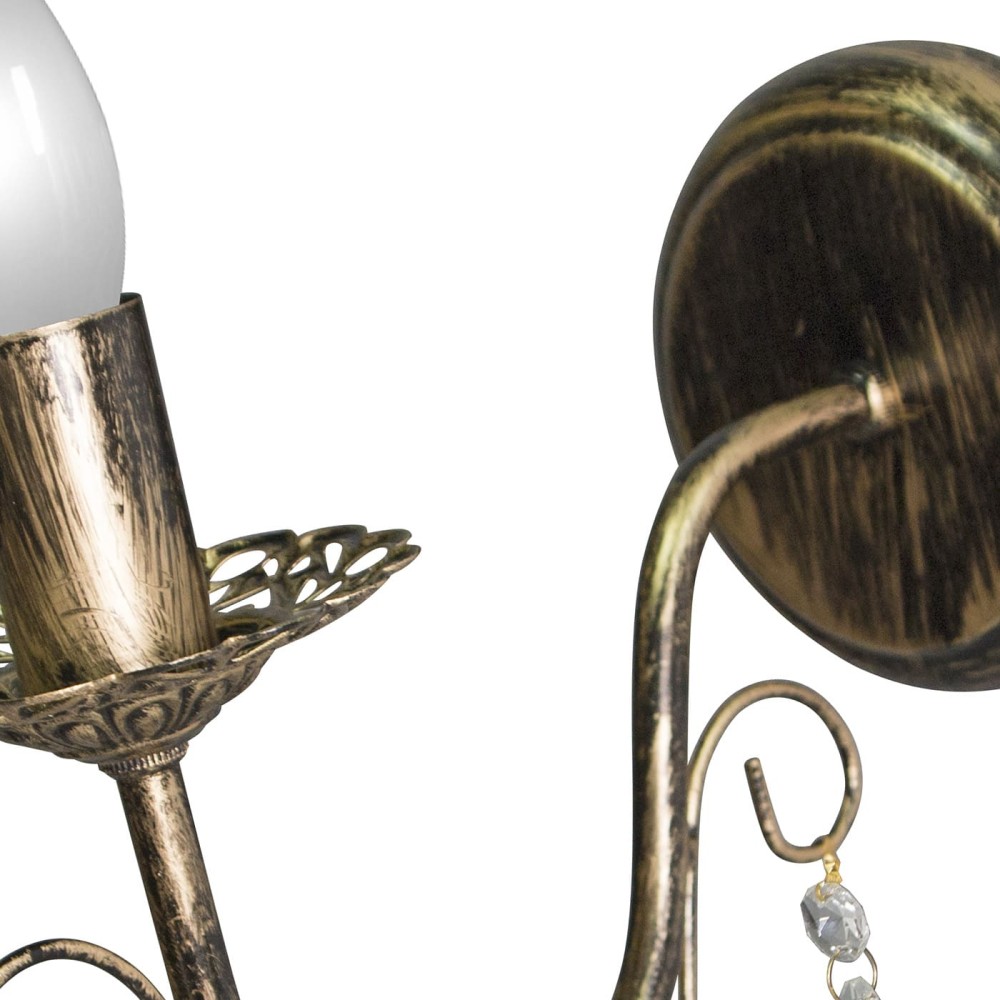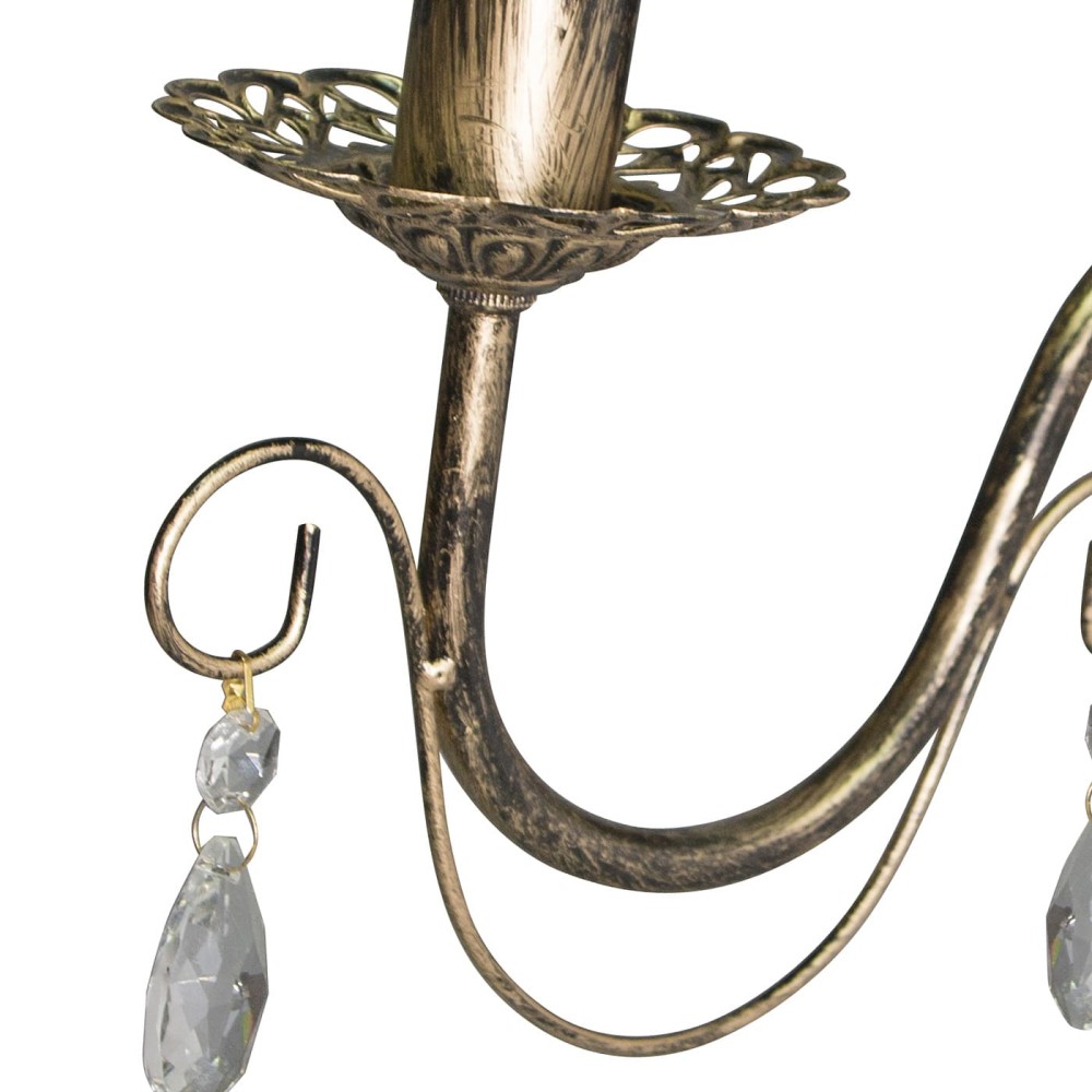 • Эстетически привлекательный дизайн: Сочетание черного металла, патины золота и хрустальных подвесок создает неповторимый визуальный эффект.