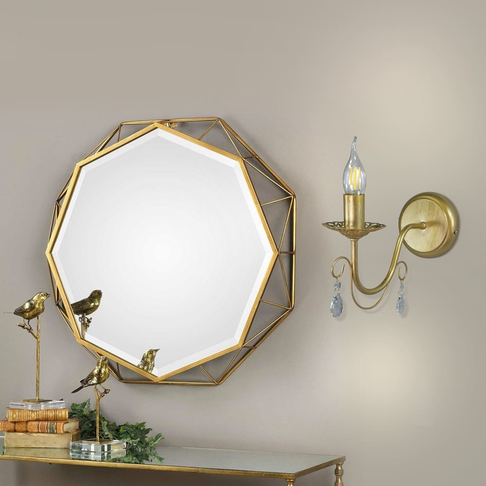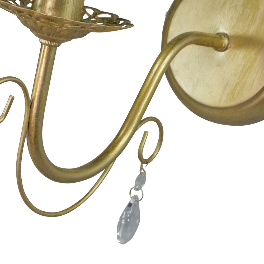 - Элегантный дизайн: Настенный бра выполнен в классическом стиле с элементами неоклассики и прованса. Хрустальные подвески придают светильнику изящность и блеск, а патинированное золото подчеркивает его благородный вид.