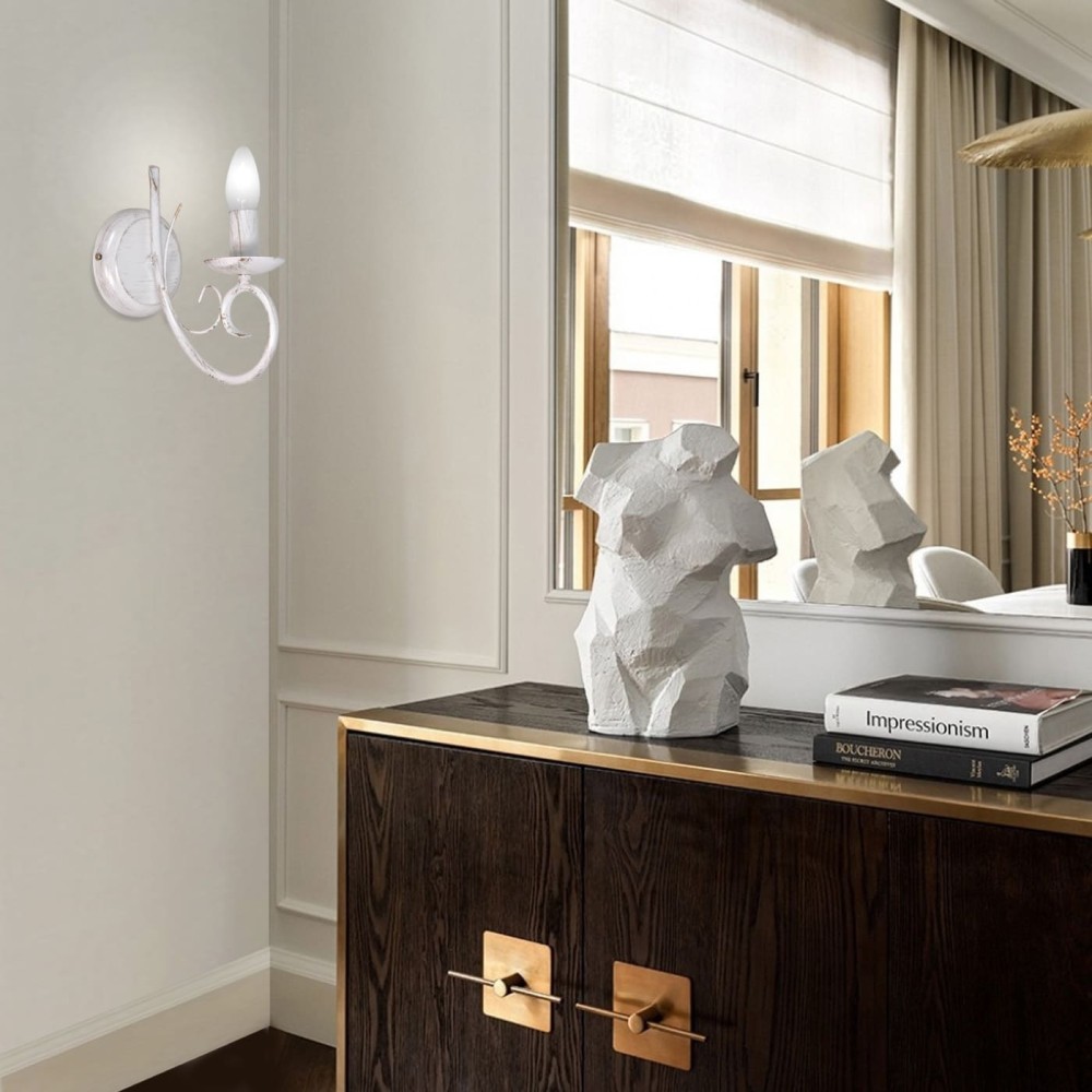 - Элегантный дизайн: Бра Петрасвет выполнен в стилях классики, неоклассики и прованс, что позволяет ему гармонично вписаться в различные интерьеры – от традиционных гостиных до романтических спален. Белый цвет светильника с патиной серебра придает ему благородный и утонченный вид.
