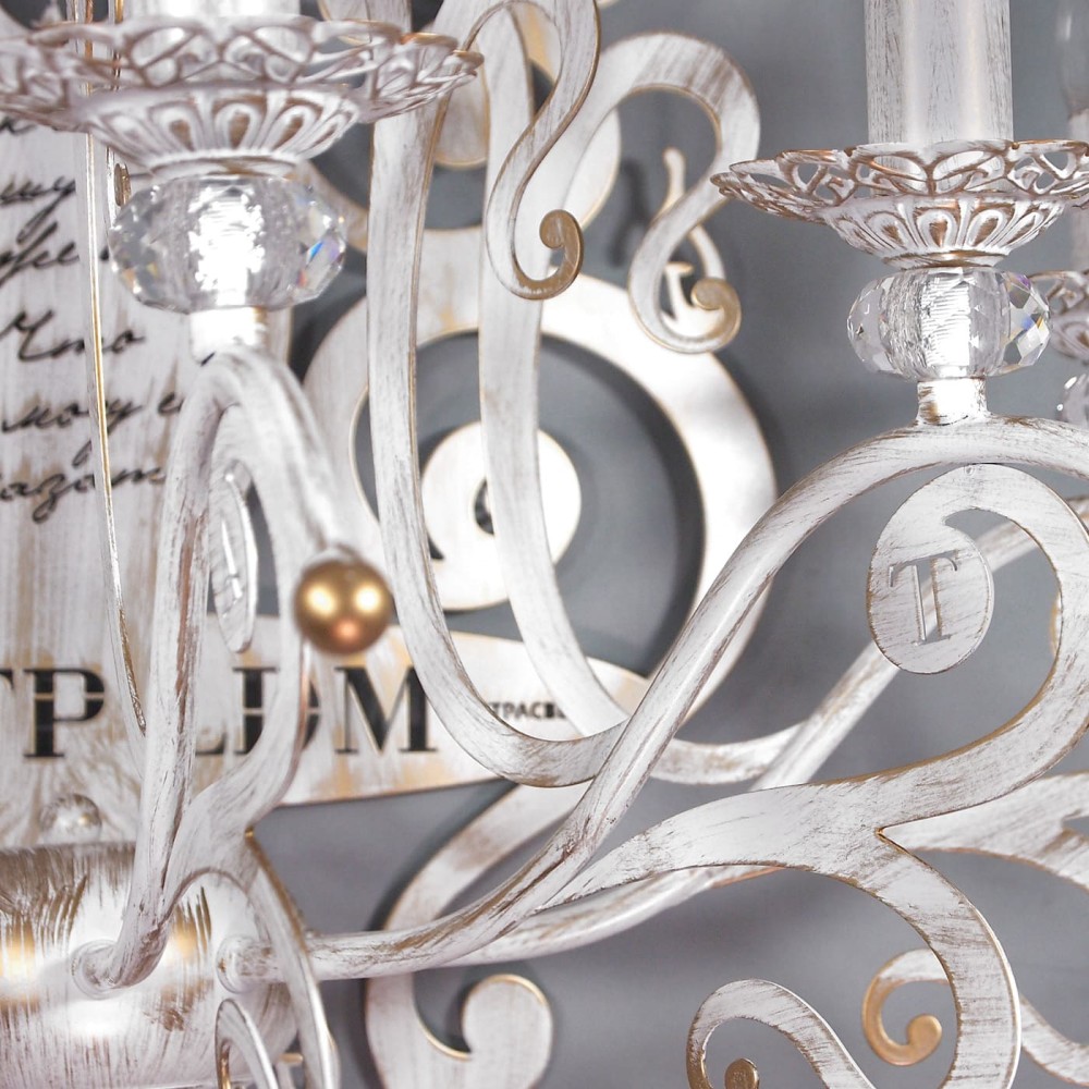 • Цвет светильника: Белый с патиной золота – сочетание современного и классического, придает люстре благородный и элегантный вид. Белая основа придает светильнику чистоту и современность, а патина золота добавляет ему роскоши и изысканности.