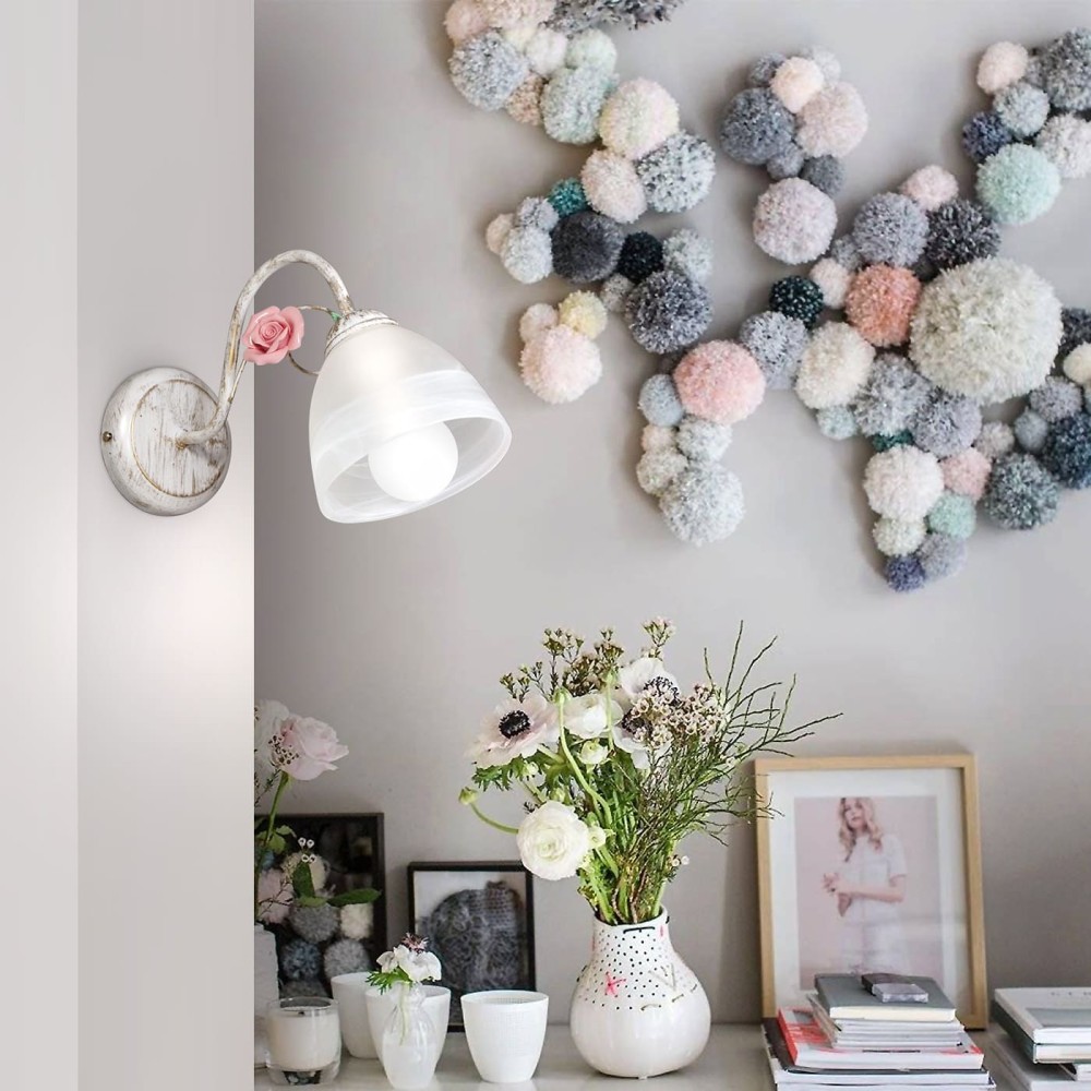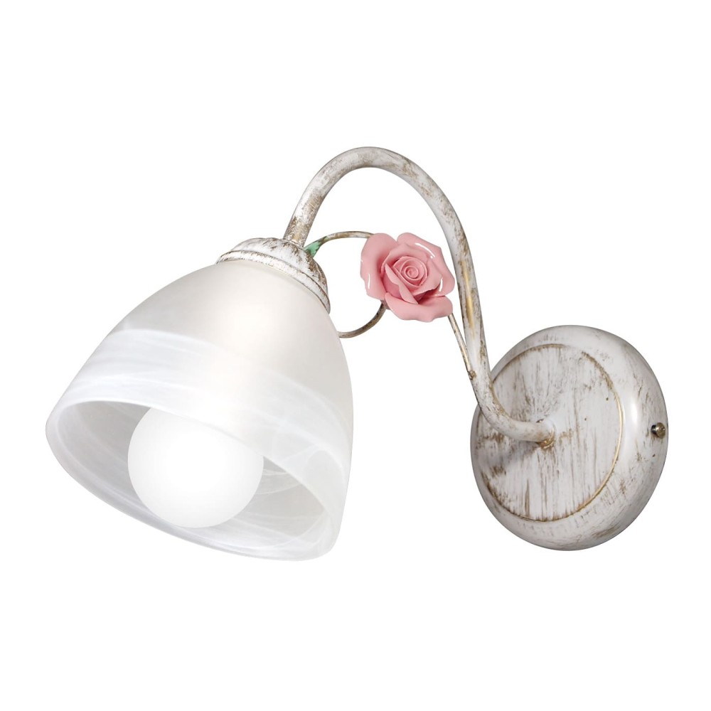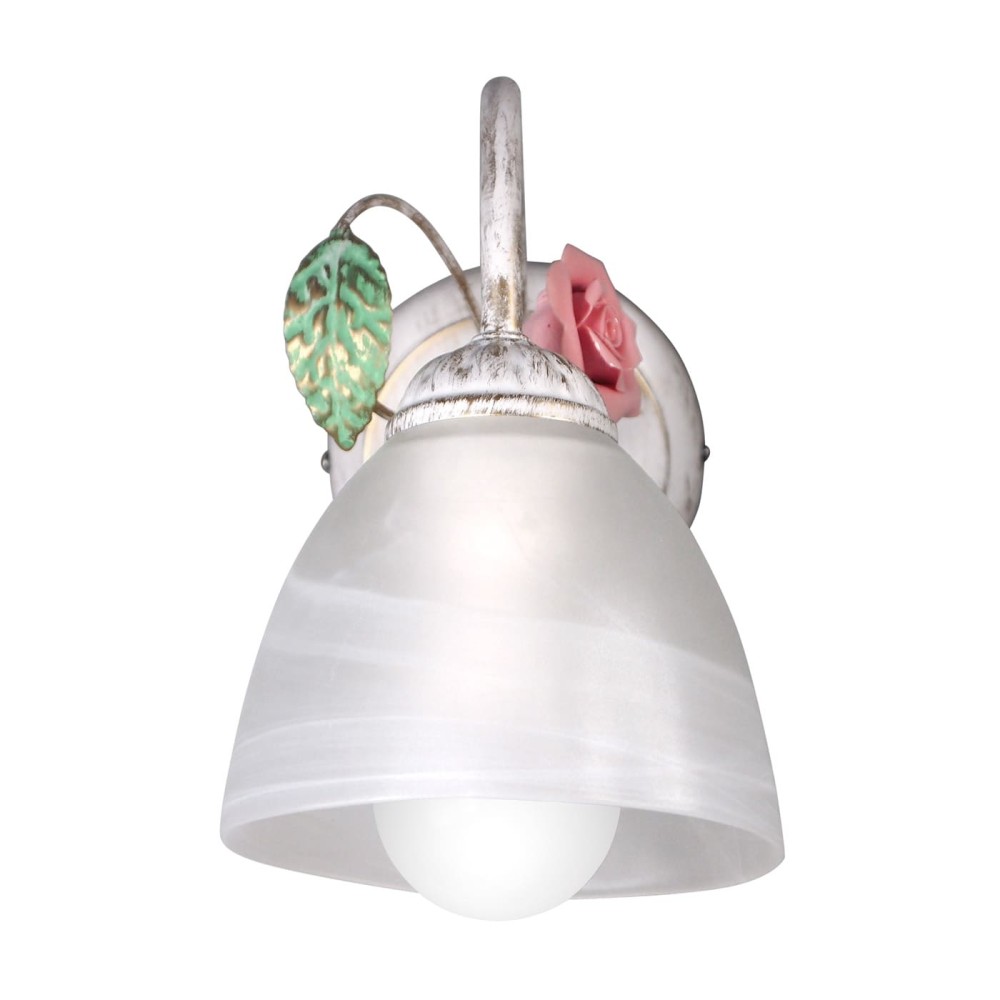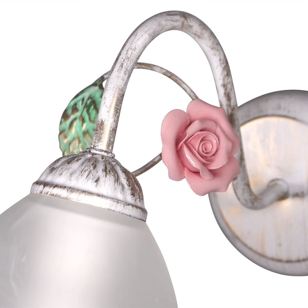- Элегантный Дизайн: Бра выполнено из высококачественного металла, покрытого патиной золота, что придает ему благородный и винтажный вид. Розовые декоративные розы, аккуратно вписанные в конструкцию, добавляют бра очарования и романтичности. Стеклянный плафон, выполненный в классической форме, идеально отражает свет, создавая мягкое и рассеянное освещение.