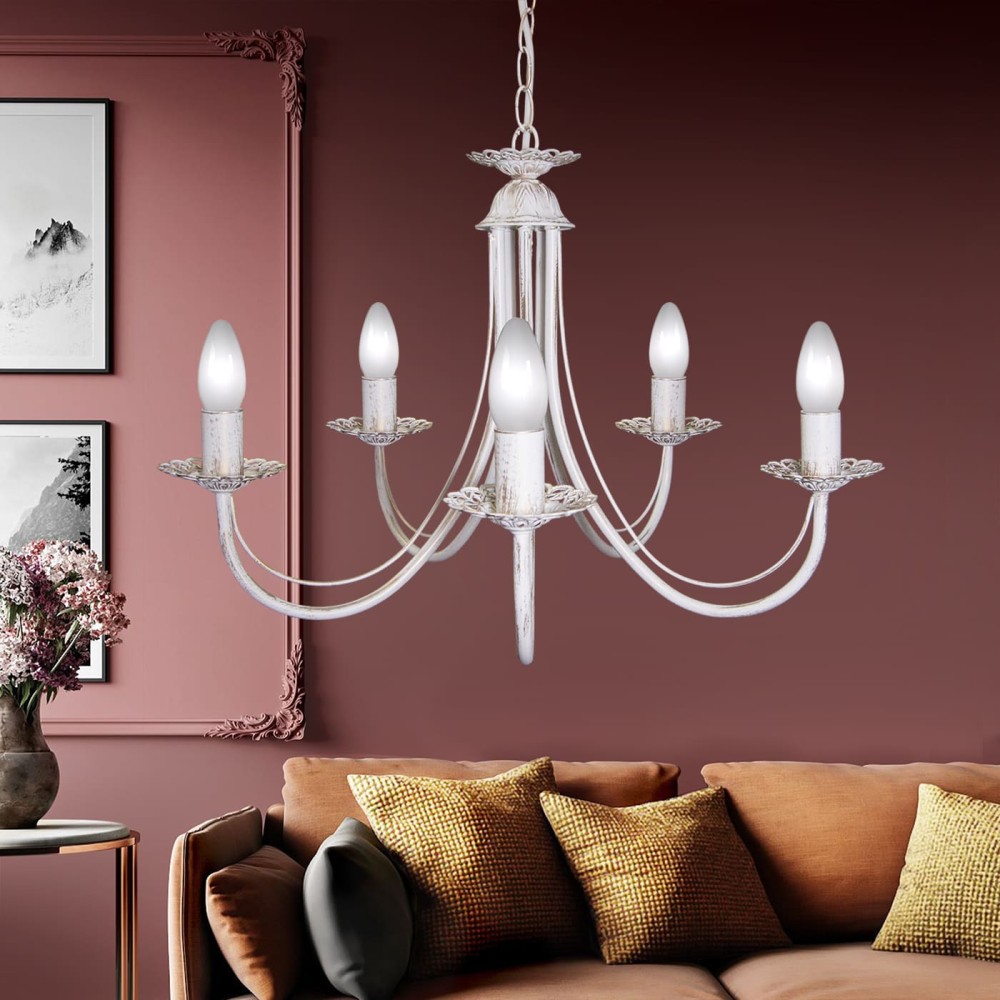 Люстра S0005-5 – это не просто источник света, это произведение искусства. Изысканный дизайн, выполненный из прочного металла, окрашенного в элегантную патину золота, придает светильнику неповторимый вид, подчеркивая статус и вкус владельца. Белоснежный цвет металла создает прекрасный контраст с золотой патиной, делая светильник особенно привлекательным.
