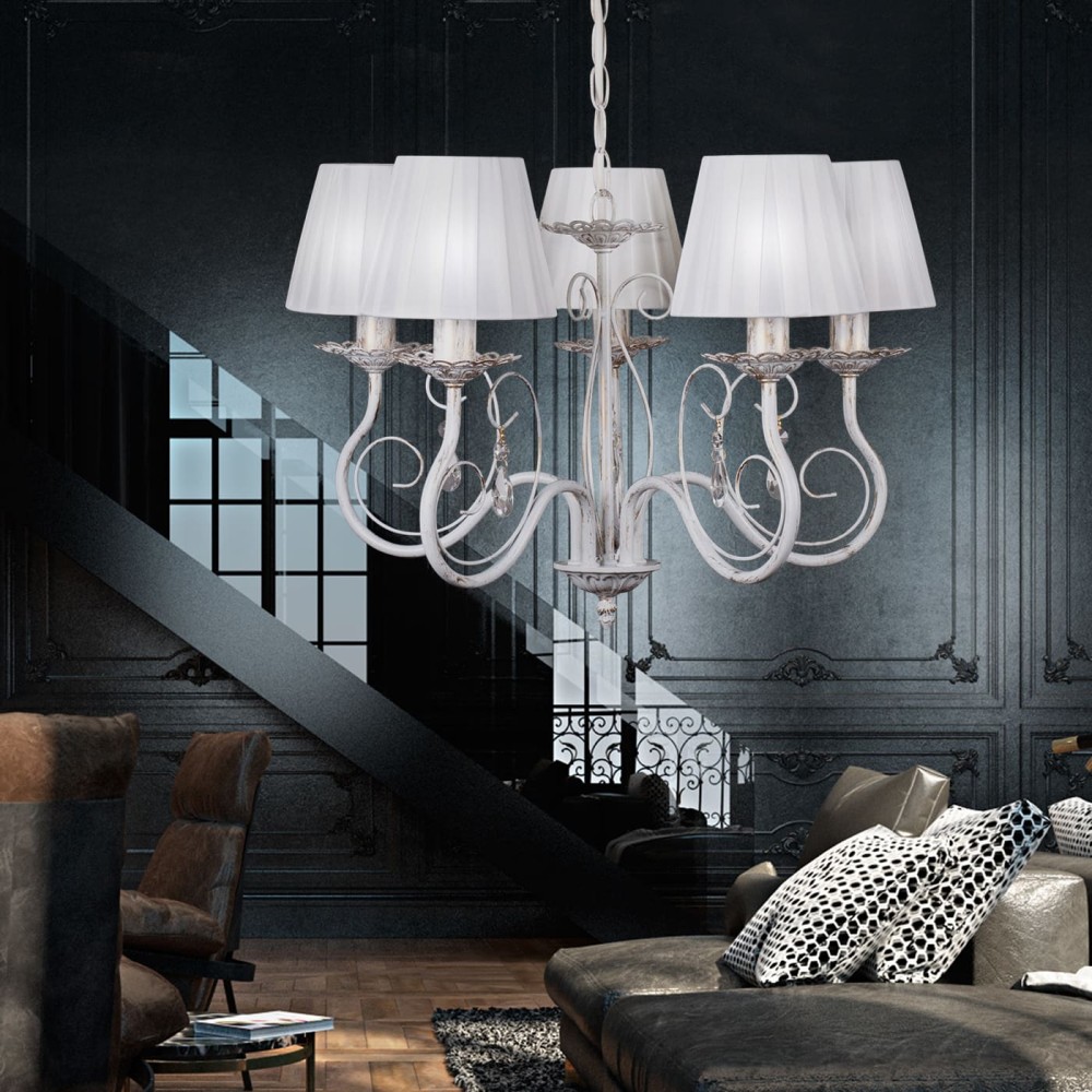 Люстра подвесная 5 ламп S1003-5 от PETRASVET – это не просто источник света, это инвестиция в красоту и комфорт вашего дома. Позвольте себе наслаждаться изысканным освещением и создайте атмосферу уюта и благородства в своем жилище! Эта люстра станет настоящим украшением вашего интерьера и подарит вам незабываемые впечатления. Приобретая эту модель, вы выбираете качество, надежность и стиль. Люстра подвесная 5 абажуров российского производства ПЕТРАСВЕТ S1003-5, 5хЕ14 макс, 60Вт с абажурами, цепь можно укоротить до 1 звена на 17 см, стиль - классика свечи, арматура - металл, цвет светильника- белый с патиной золота, размеры светильника (LxWxH) - 58x58x62, вес - 1,6 кг, Люстра на 2 включения, Люстра подвесная для натяжных потолков и освещение 15-20 м2 помещения в зависимости от мощности лампочек Е14, Люстра подвесная цепная 5 рожковая с хрусталем подходит для освещения комнат, кабинета, гостиной, спальни, столовой, детской, кухни, Заводская гарантия 7 лет, Люстра просто собирается, Люстры пяти рожковые собраны и проверены на производстве, плотно упакован в коробке из тройного гофра картона, Лампочки светодиодные LED подбираются по следующим параметрам: для яркого освещения - 3 Вт на 1 м2 комнаты, для среднего - 2 Вт на 1 м2,