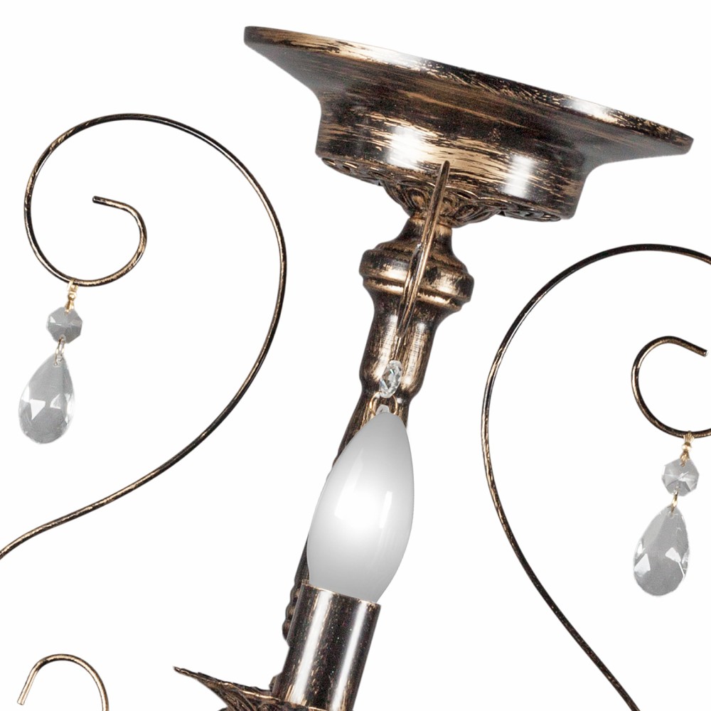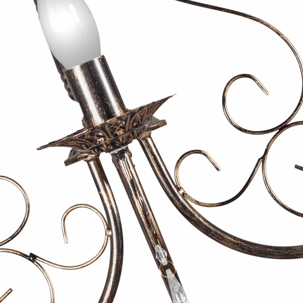 Люстра изготовлена из высококачественного металла, покрытого патиной золота, что придает ей благородный и антикварный вид. Тщательно продуманный дизайн, выполненный в стиле классики, неоклассики и прованса, сочетает в себе традиции и современный подход. Металлическое основание, шириной 18 см, гармонично дополняется изящными хрустальными подвесками, которые не только украшают светильник, но и рассеивают мягкий, рассеянный свет, создавая неповторимую атмосферу.
