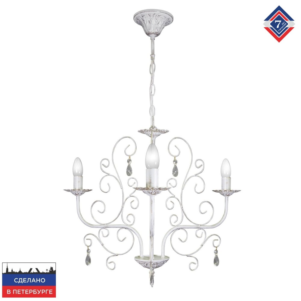 Мы уверены, что люстра S115-3 станет прекрасным дополнением к вашему интерьеру и подарит вам и вашим близким незабываемую атмосферу комфорта и уюта. Закажите ее прямо сейчас и наслаждайтесь роскошным освещением вашего дома! Если у вас остались какие-либо вопросы, пожалуйста, свяжитесь с нами. Мы всегда рады помочь вам сделать правильный выбор. Мы предлагаем широкий ассортимент светильников в различных стилях и ценовых категориях. Позвольте нам создать для вас идеальное освещение! Мы также предлагаем доставку по всей России. Следите за нашими акциями и скидками! Заказывайте прямо сейчас и получите приятный бонус! Наш магазин – это ваш надежный партнер в мире освещения. Люстра подвесная 3 лампы свечи прованс с хрусталем российского производства ПЕТРАСВЕТ S1015-3, 3хЕ14 макс, 60Вт с хрустальными подвесками, цепь можно укоротить до 1 звена на 17 см, стиль - классика свечи, арматура - металл, цвет светильника- белый с патиной золота, размеры светильника (LxWxH) - 66x66x78, вес - 1,4 кг, Люстра подвесная для натяжных потолков и освещение 9-12 м2 помещения в зависимости от мощности лампочек Е14, Люстра подвесная цепная трех рожковая свечи подходит для освещения комнат, кабинета, гостиной, спальни, столовой, детской, кухни, Заводская гарантия 7 лет, Люстра просто собирается, Люстра 3 рожковая собрана и проверена на производстве, плотно упакован в коробке из тройного гофра картона, Лампочки светодиодные LED подбираются по следующим параметрам: для яркого освещения - 3 Вт на 1 м2 комнаты, для среднего - 2 Вт на 1 м2,