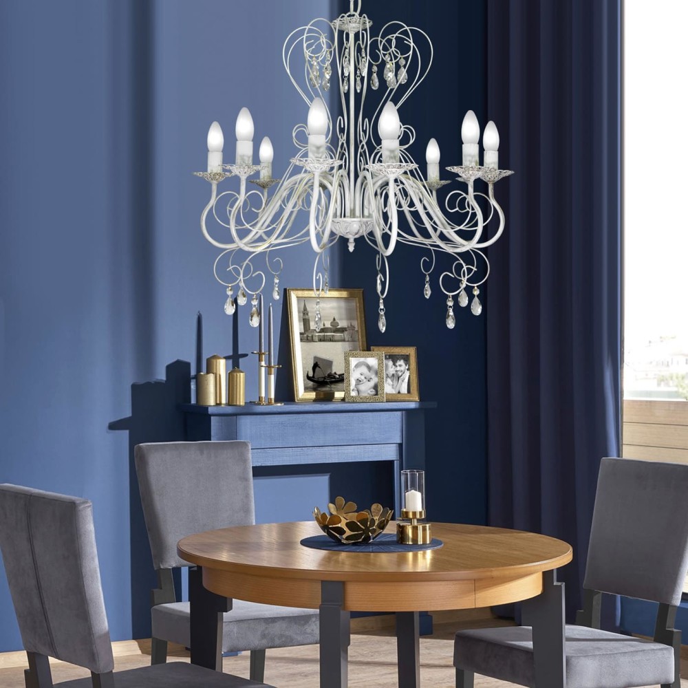 Люстра подвесная большая 10 ламп российского производства ПЕТРАСВЕТ S1021-10, 10хЕ14 макс,60Вт, цепь можно укоротить до 1 звена на 17 см, стиль - классика свечи, арматура - металл, цвет светильника- белый с патиной золота, размеры светильника (LxWxH) - 70x70x93, вес - 3,5 кг, Люстра на 2 включения, Люстра подвесная для натяжных потолков и освещение 30 м2 помещения в зависимости от мощности лампочек Е14, Люстра подвесная цепная 10 рожковая подходит для освещения комнат, кабинета, гостиной, спальни, столовой, детской, кухни, Заводская гарантия 7 лет, Люстра просто собирается, Подвесной светильник на 10 лампочек плотно упакован в коробке из тройного гофра картона, Лампочки светодиодные LED подбираются по следующим параметрам: для яркого освещения - 3 Вт на 1 м2 комнаты, для среднего - 2 Вт на 1 м2,