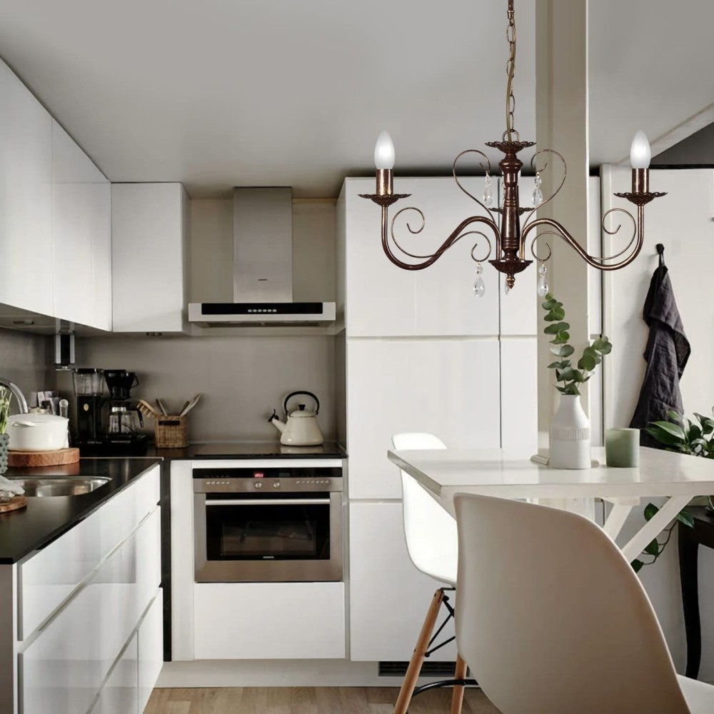 Люстра подвесная 3 лампы дизайнерская Петрасвет производство люстр №1 в России S1032-3, 3хЕ14 макс, 60Вт с хрустальными подвесками, цепь можно укоротить до 1 звена на 17 см, стиль - классика свечи, арматура - металл, цвет светильника- коричневый с золотом, размеры светильника (LxWxH) - 58x58x62, вес - 1,4 кг, Люстра подвесная 3 лампы для натяжных потолков и освещение 9-12 м2 помещения в зависимости от мощности лампочек Е14, Люстра подвесная 3 лампы цепная трех рожковая свечи подходит для освещения комнат, кабинета, гостиной, спальни, столовой, детской, кухни, Заводсткая гарантия завода Петрасвет 7 лет, Люстра 3 рожковая собрана и проверена на производстве, просто собирается, плотно упакован в коробке из тройного гофра картона, Упаковка выдерживает и гарантирует сохранность содержимого при падении на дно и ребро коробки с высоты 110 см, Лампочки светодиодные LED подбираются по следующим параметрам: для яркого освещения - 3 Вт на 1 м2 комнаты, для среднего - 2 Вт на 1 м2, В случае боя или не комплекта, вышлем новый за свой счет в день обращения,