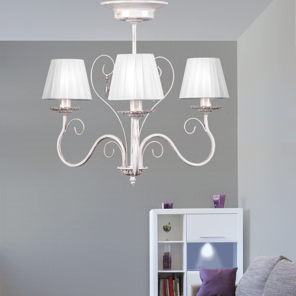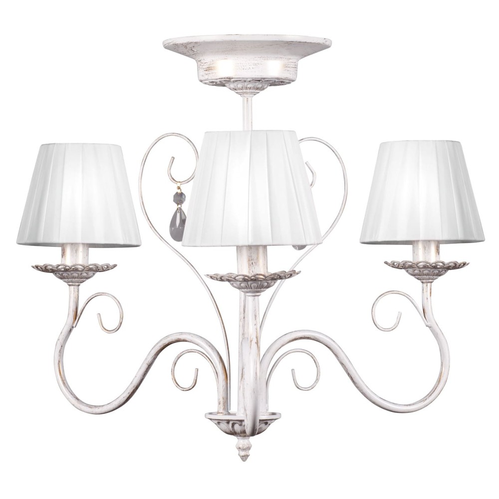 Люстра потолочная 3 абажура российского производства ПЕТРАСВЕТ S1038-3, 3хЕ14 макс, 60Вт с абажурами, стиль - классика свечи, арматура - металл, цвет светильника- белый с патиной золота, размеры светильника (LxWxH) - 58x58x46, вес - 1,4 кг, Потолочный светильник рассчитан на натяжной потолок и освещение 9-12 м2 помещения в зависимости от мощности лампочек Е14, Все люстры потолочные подвесные подходят и для натяжных и подвесных потолков, Люстра потолочная 3 абажура трех рожковая с хрусталем подходит для освещения комнат, кабинета, гостиной, спальни, столовой, детской, кухни, Заводская гарантия 7 лет, Люстра просто собирается, Потолочный светильник просто собирается, плотно уложен в коробке, потолочная 3 абажура люстра крепится к потолку стандартной потолочной планкой, Лампочки светодиодные LED подбираются по следующим параметрам: для яркого освещения - 3 Вт на 1 м2 комнаты, для среднего - 2 Вт на 1 м2,