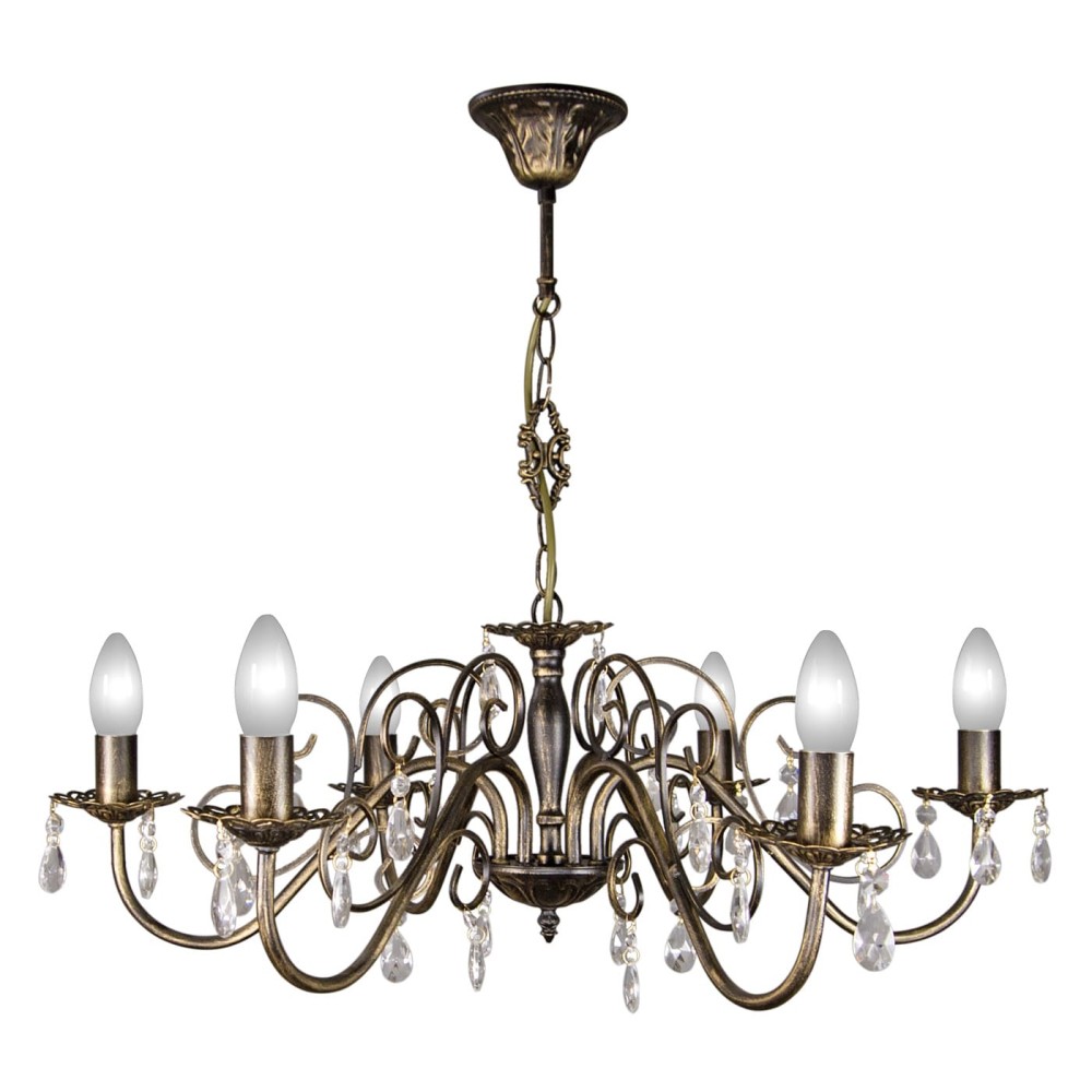 Люстра подвесная дизайнерская Петрасвет производство люстр №1 в России S1045-6, 6хЕ14 макс, 60Вт с хрустальными подвесками, цепь можно укоротить до 1 звена на 17 см, стиль - классика свечи, арматура - металл, цвет светильника- черный с патиной золота, размеры светильника (LxWxH) - 74x74x60, вес - 2,2 кг, Люстра на 2 включения, Люстра подвесная и для натяжных потолков и освещение 18-24 м2 помещения в зависимости от мощности лампочек Е14, Люстра подвесная цепная 6 рожковая черная с золотом подходит для освещения зала, кабинета, гостиной, спальни, столовой, детской, кухни, Заводсткая гарантия завода Петрасвет 7 лет, Подвесной светильник проверен на производстве, просто собирается, плотно упакован в коробке из тройного гофра картона, Упаковка выдерживает и гарантирует сохранность содержимого при падении на дно и ребро коробки с высоты 110 см, Лампочки светодиодные LED подбираются по следующим параметрам: для яркого освещения - 3 Вт на 1 м2 комнаты, для среднего - 2 Вт на 1 м2, В случае боя или не комплекта, вышлем новый за свой счет в день обращения,