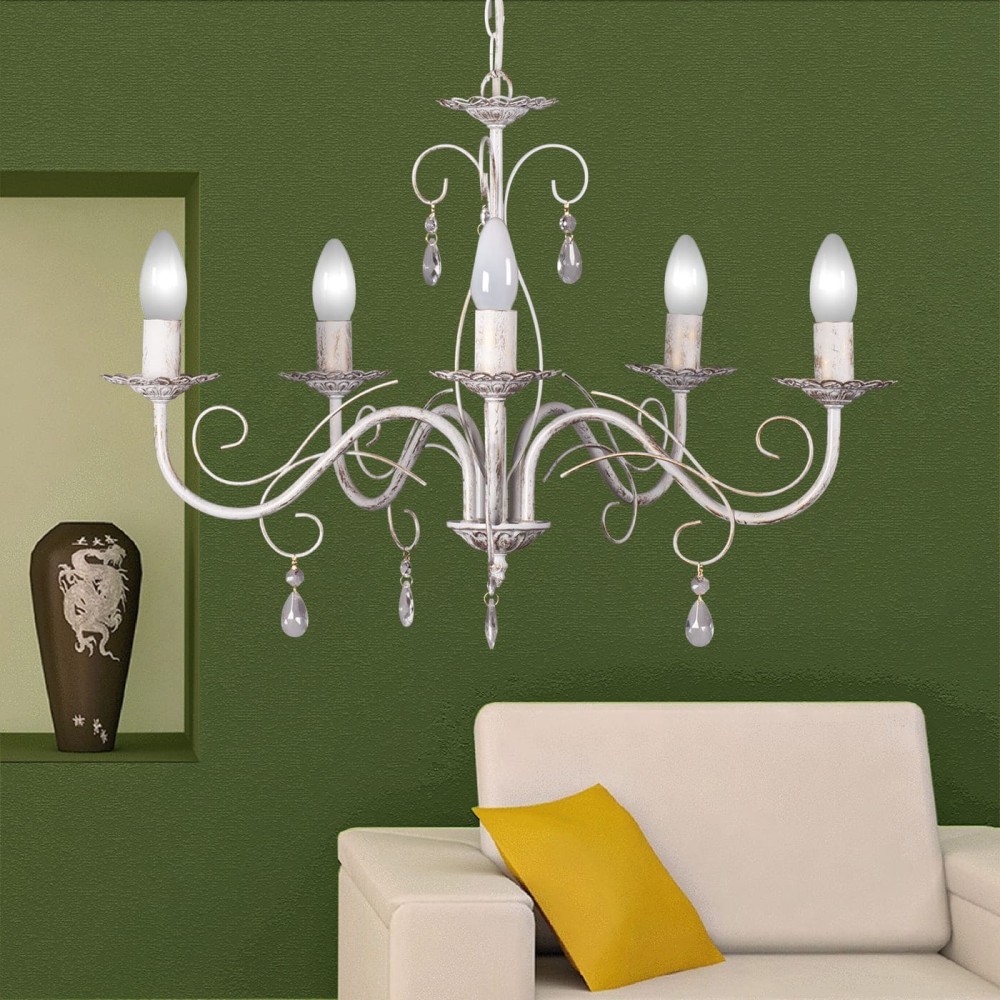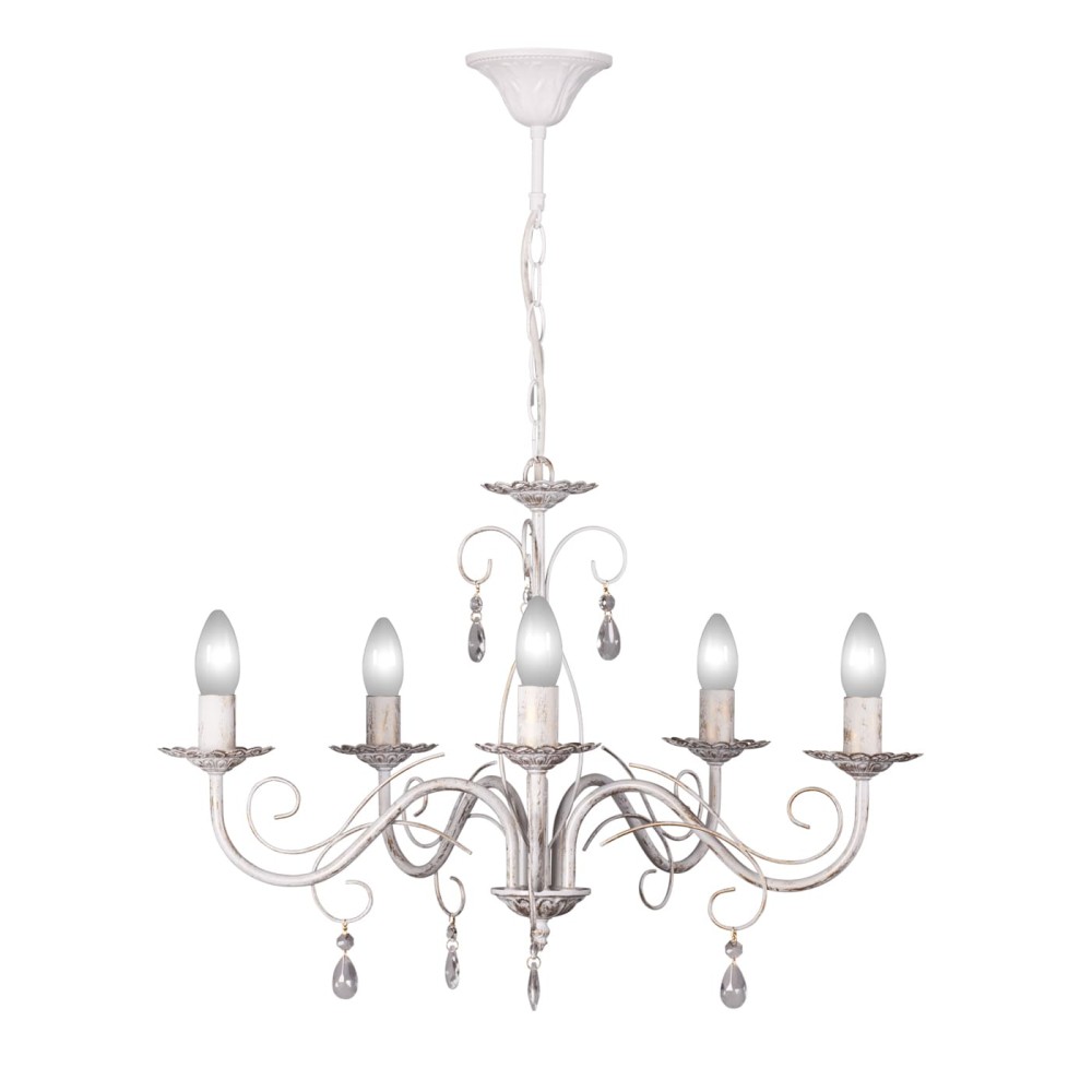 Люстра подвесная 5 ламп российского производства ПЕТРАСВЕТ S1050-5, 5хЕ14 макс, 60Вт с хрустальными подвесками, цепь можно укоротить до 1 звена на 17 см, стиль - классика свечи, арматура - металл, цвет светильника- белый с патиной золота, размеры светильника (LxWxH) - 58x58x72, вес - 1,6 кг, Люстра на 2 включения, Люстра подвесная для натяжных потолков и освещение 15-20 м2 помещения в зависимости от мощности лампочек Е14, Люстра подвесная цепная 5 рожковая с хрусталем подходит для освещения комнат, кабинета, гостиной, спальни, столовой, детской, кухни, Заводская гарантия 7 лет, Люстра просто собирается, Люстры пяти рожковые собраны и проверены на производстве, плотно упакован в коробке из тройного гофра картона, Лампочки светодиодные LED подбираются по следующим параметрам: для яркого освещения - 3 Вт на 1 м2 комнаты, для среднего - 2 Вт на 1 м2,