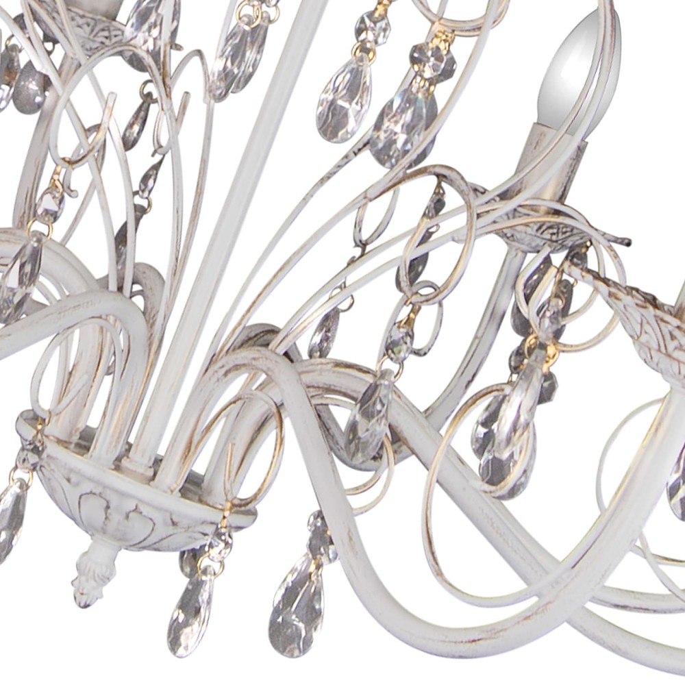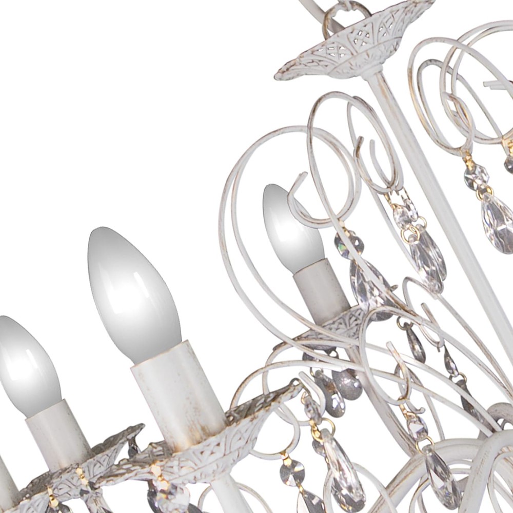 Особенностью этой люстры являются роскошные хрустальные подвески, которые придают ей неповторимый блеск и изысканность. Эти хрустальные элементы не только украшают светильник, но и рассеивают свет, создавая мягкое и приглушенное освещение. Их расположение и форма гармонично дополняют общий дизайн, делая люстру по-настоящему уникальной.