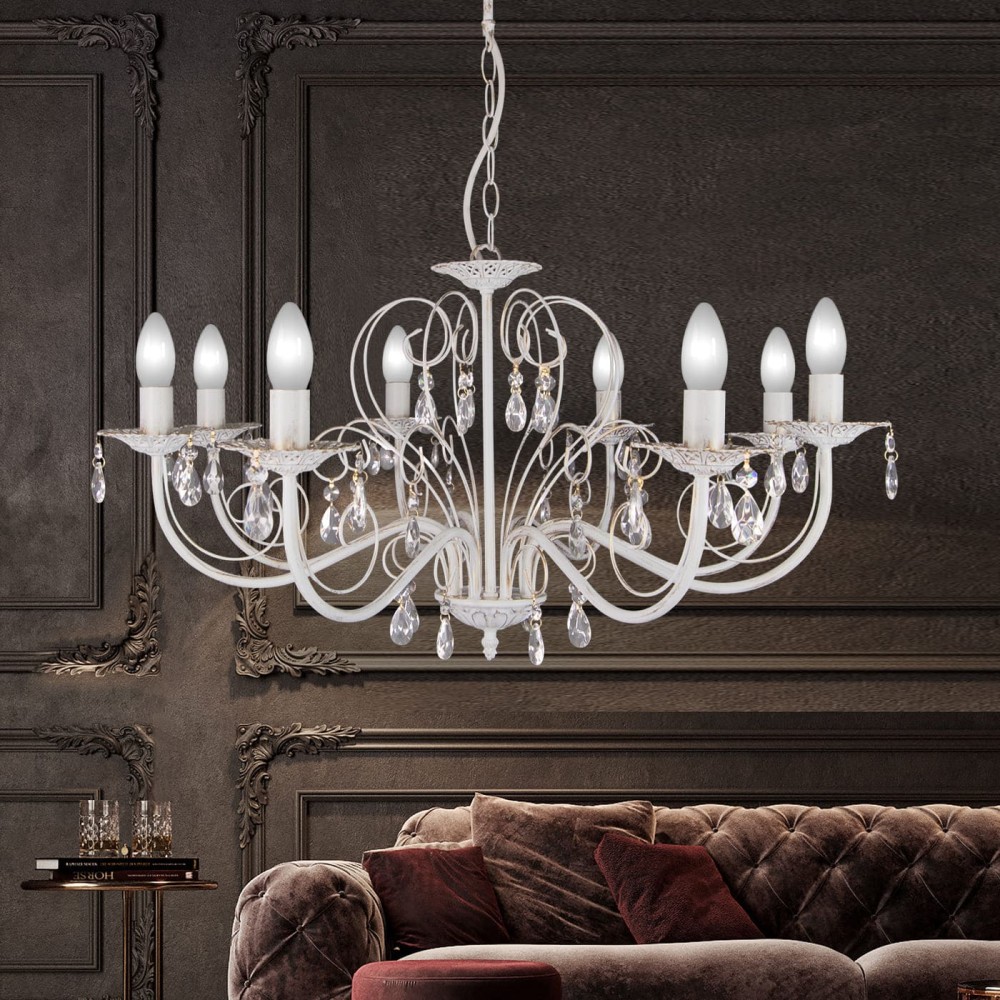 Люстра S1055-8 – это воплощение классической элегантности с легким намеком на неоклассику и прованс. Массивное металлическое основание, выполненное в стильном белом цвете с патиной золота, придает светильнику величественный вид. Использование высококачественного металла обеспечивает долговечность и надежность конструкции. Патиновая золотая отделка придает светильнику глубину и благородство, подчеркивая его статус и роскошь.