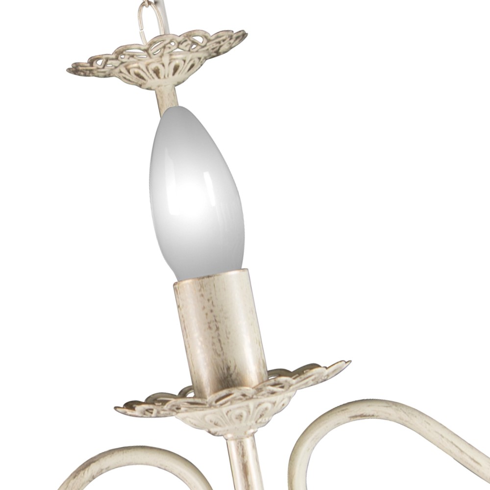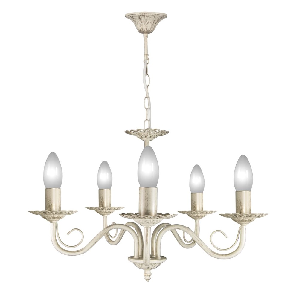 Технические характеристики: Люстра рассчитана на 5 ламп типа E14. Поддерживается использование ламп накаливания, светодиодных и люминисцентных ламп, что дает возможность выбрать наиболее подходящий тип освещения в соответствии с вашими предпочтениями и потребностями. Световой поток люстры составляет 3750 люмен, что обеспечивает достаточное освещение для площади 15-20 квадратных метров. Напряжение – 220 В. Тип монтажа – подвесной, что предполагает крепление к потолку с помощью крюка.