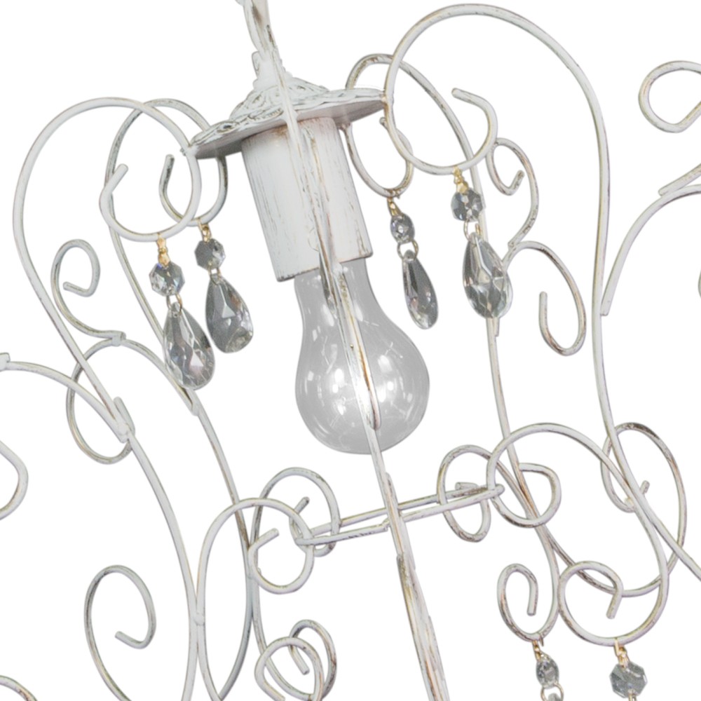 Люстра выполнена из прочного и долговечного металла, обработанного патиной золота, что придает ей благородный и винтажный вид. Белый цвет металла создает идеальный фон для сверкающих хрустальных подвесок, добавляя люстре изысканности и блеска. Ее классический дизайн в сочетании с элементами неоклассики и прованса гармонично впишется в любой интерьер, от традиционного до современного.