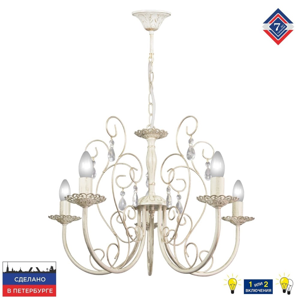 Подарите своему дому роскошь и свет с люстрой S1089-5 от Петрасвет! Эта великолепная люстра станет настоящим украшением вашего интерьера и создаст неповторимую атмосферу уюта и комфорта. Закажите ее прямо сейчас и наслаждайтесь ее красотой и функциональностью! Мы уверены, что вы будете довольны своим выбором. Не упустите возможность преобразить свой дом с помощью этой роскошной люстры. Свет, стиль и элегантность – все это в одной модели! Люстра подвесная 5 ламп российского производства ПЕТРАСВЕТ S1089-5, 5хЕ14 макс, 60Вт с хрустальными подвесками, цепь можно укоротить до 1 звена на 17 см, стиль - классика свечи, арматура - металл, цвет светильника- бежевый с патиной золота, размеры светильника (LxWxH) - 60x60x73, вес - 2 кг, Люстра на 2 включения, Люстра подвесная для натяжных потолков и освещение 15-20 м2 помещения в зависимости от мощности лампочек Е14, Люстра подвесная цепная 5 рожковая с хрусталем подходит для освещения комнат, кабинета, гостиной, спальни, столовой, детской, кухни, Заводская гарантия 7 лет, Люстра просто собирается, Люстры пяти рожковые собраны и проверены на производстве, плотно упакован в коробке из тройного гофра картона, Лампочки светодиодные LED подбираются по следующим параметрам: для яркого освещения - 3 Вт на 1 м2 комнаты, для среднего - 2 Вт на 1 м2,