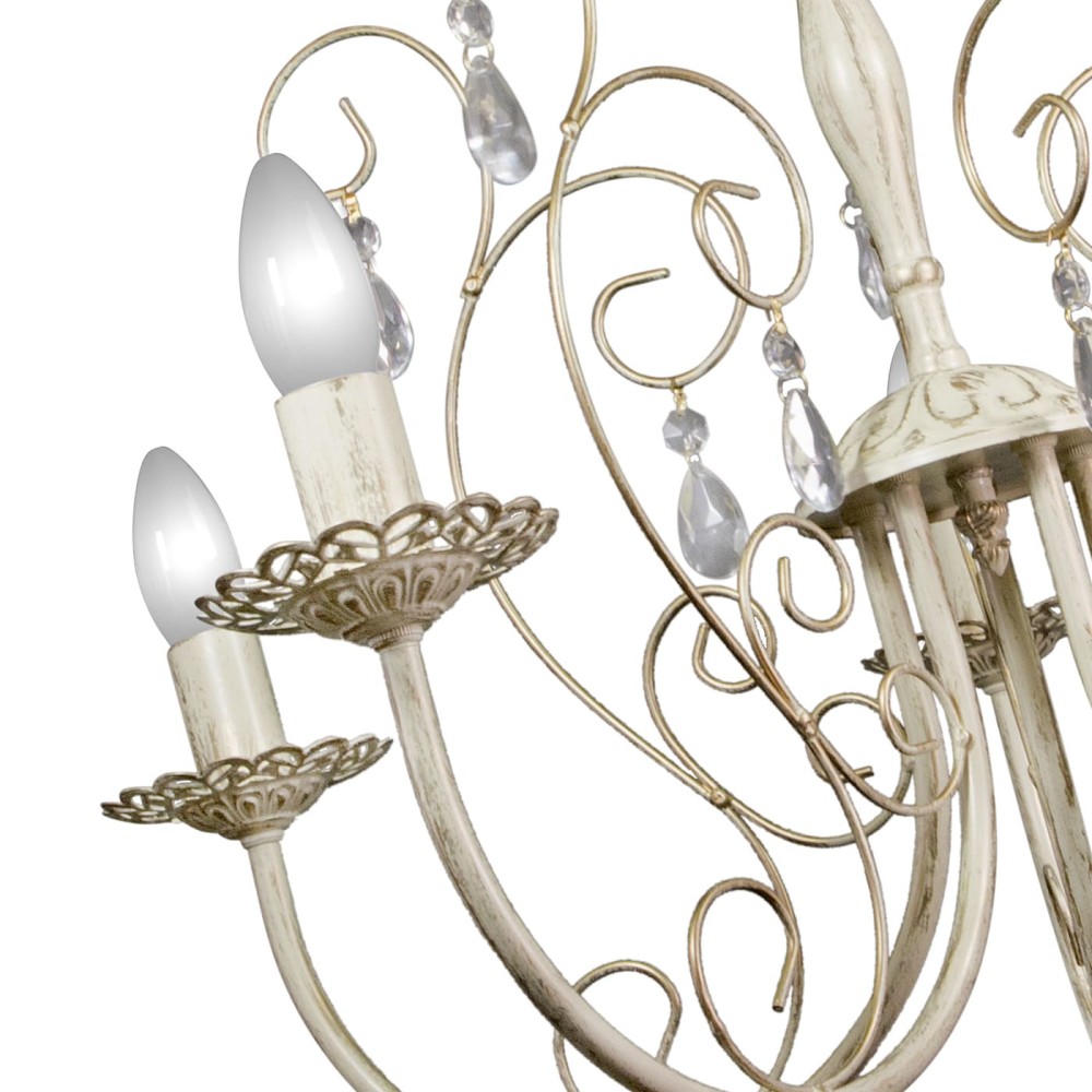 • Изысканный дизайн: Роскошный внешний вид, сочетающий в себе элементы классики, неоклассики и прованса. Хрустальные подвески добавляют блеска и элегантности.