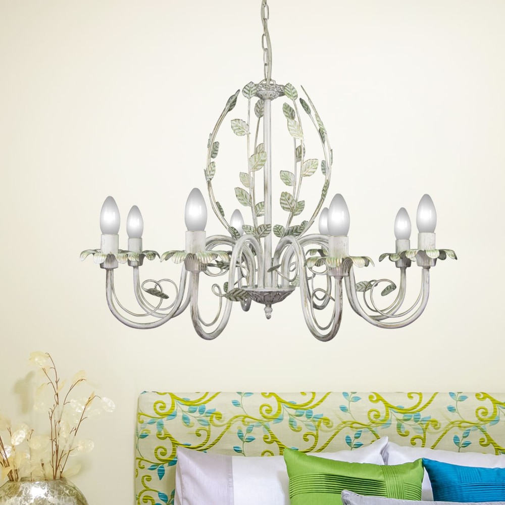 Люстра Флористика – это не просто источник света, это инвестиция в создание красивого и комфортного пространства. Она станет прекрасным дополнением к любому интерьеру, подчеркнув вашу индивидуальность и вкус. Закажите люстру Флористика прямо сейчас и наслаждайтесь ее красотой и функциональностью! Подарите своему дому элегантность и уюта с помощью этой роскошной люстры. Создайте атмосферу, которая будет радовать вас и ваших близких долгие годы. Эта люстра – идеальный выбор для тех, кто ценит качество, стиль и комфорт. Не упустите возможность преобразить свой дом с помощью люстры Флористика от PETRASVET! Люстра подвесная флористика с листочками 8 ламп российского производства ПЕТРАСВЕТ S1115-8, 8хЕ14 макс,60Вт, цепь можно укоротить до 1 звена на 17 см, стиль - классикая флористика, цветочные люстры, арматура - металл, цвет светильника - белый с патиной золота, размеры светильника (LxWxH) - 72x72x85, вес - 2,6 кг, Люстра на 2 включения, Люстра подвесная для натяжных потолков и освещение 24-32 м2 помещения в зависимости от мощности лампочек Е14, Все светильники свечи с цветами и листьями подходят и для натяжных и подвесных потолков, Люстра подвесная большая цепная 8 рожковая зеленого цвета флористика подходит для освещения комнат, кабинета, гостиной, спальни, столовой, детской, кухни, Заводская гарантия 7 лет, Люстра просто собирается, Подвесной светильник на 8 лампочек собран и проверен на производстве, плотно упакован в коробке из тройного гофра картона, Упаковка выдерживает и гарантирует сохранность содержимого при падении на дно и ребро коробки с высоты 110 см, Подвесная люстра вешается стандартным крючком на потолочный крюк, провода подсоединяются к клеммной колодке люстры и фиксируется цепная чашка в верхнем положении винтом, Лампочки светодиодные LED подбираются по следующим параметрам: для яркого освещения - 3 Вт на 1 м 2 комнаты, для среднего - 2 Вт на 1 м 2,