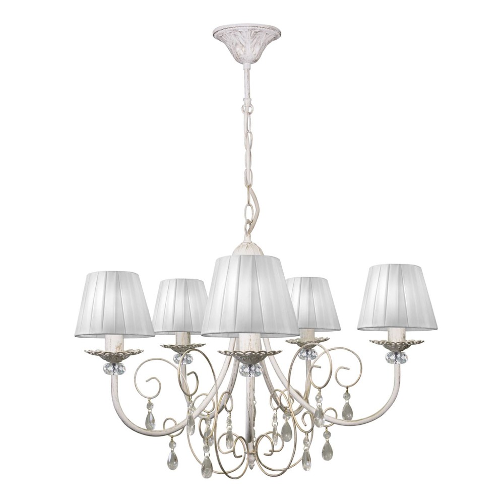 Люстра S1126-5 выполнена в стиле классики, с элементами неоклассики и прованса, что делает ее универсальной и подходящей для различных интерьеров. Изысканный белый цвет светильника с патиной золота придает ей благородный и утонченный вид. Сочетание металлического каркаса с декоративными элементами из ткани, хрусталя и хрустальных вставок создает неповторимый визуальный эффект.