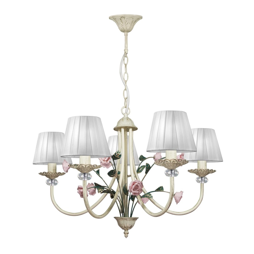 S1129-5 – это не просто светильник, это произведение искусства. Люстра выполнена из металла с патиной золота, что придает ей благородный и изысканный вид. Абажуры из ткани мягко рассеивают свет, создавая приятную и расслабляющую атмосферу в помещении. Розы розовые и хрустальные вставки добавляют люстре неповторимый шарм и изысканность. Декоративные элементы выполнены с высокой точностью, что делает люстру особенно привлекательной.
