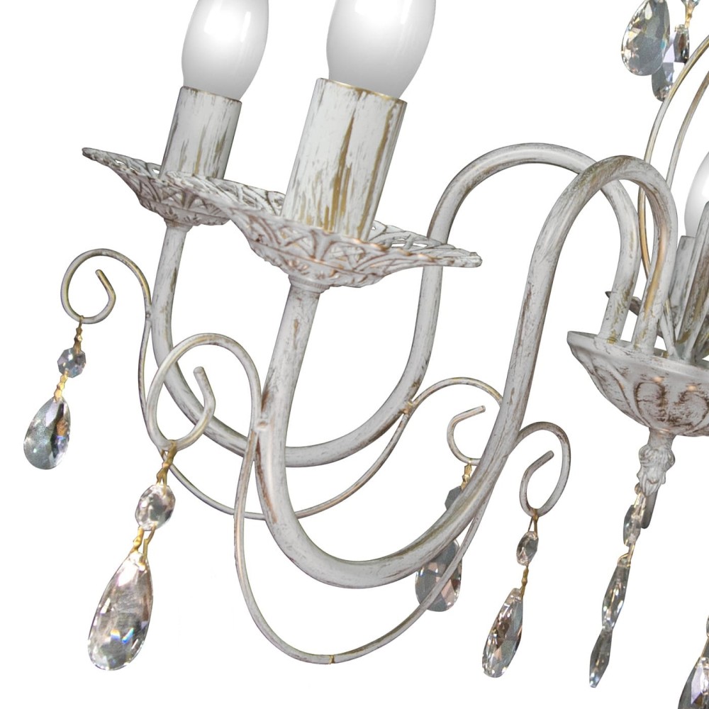 - Роскошный дизайн: Хрустальные подвески и патина золота создают атмосферу роскоши и элегантности.