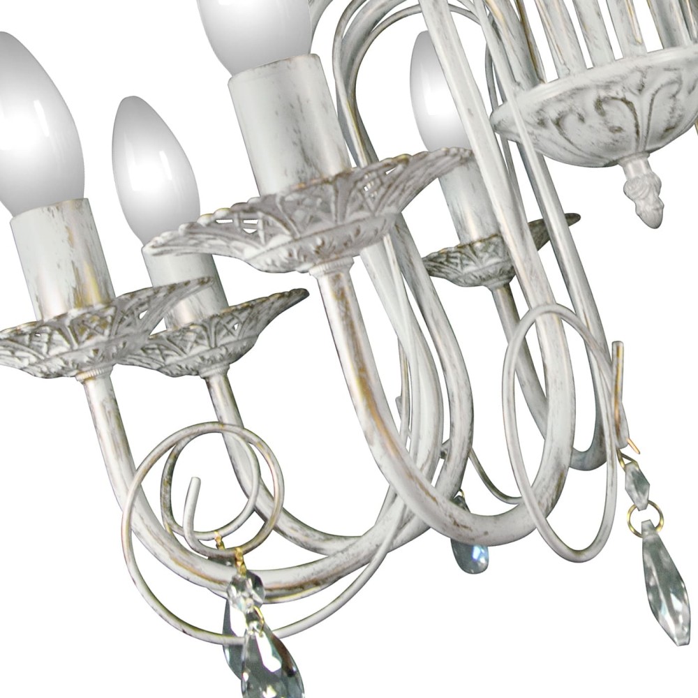 Люстра S1147 принадлежит к стилям классики, неоклассики и прованса, что делает ее универсальной и подходящей для различных интерьеров – от роскошных залов до уютных гостиных и спален. Ее конструкция выполнена из прочного и долговечного металла, покрытого патиной золота, что придает ей благородный и винтажный вид. Белая основа светильника создает идеальный фон для сверкающих хрустальных подвесок, которые являются главным акцентом люстры. Использование металла и хрусталя – это традиционные материалы, которые всегда ассоциируются с роскошью и элегантностью.