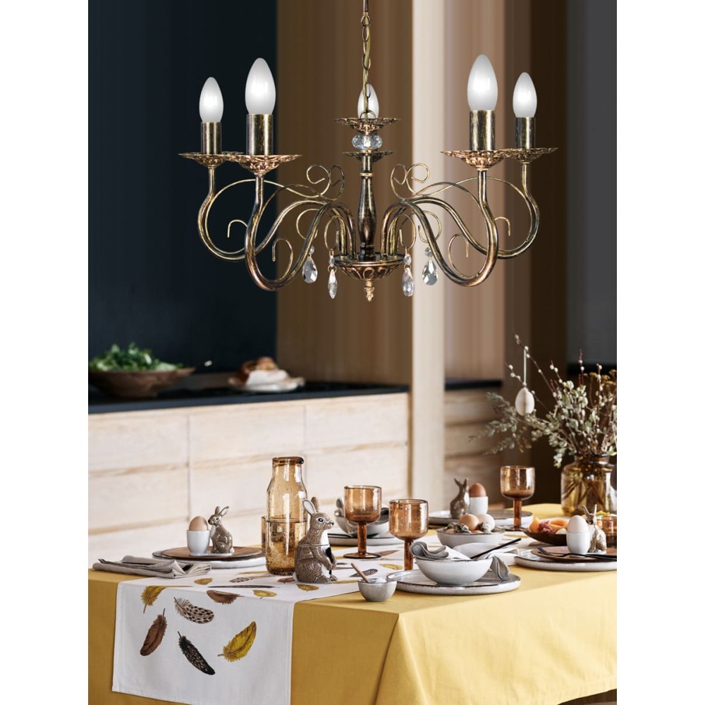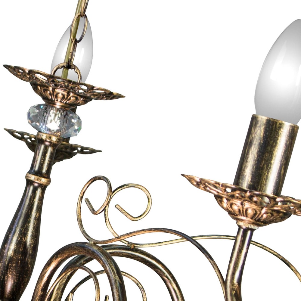 - Роскошный хрусталь: Пять сверкающих хрустальных подвесок и вставки не только добавляют люстре визуального блеска, но и превосходно рассеивают свет, создавая мягкое и комфортное освещение. Использование высококачественного хрусталя гарантирует долговечность и сохранение первоначального блеска.
