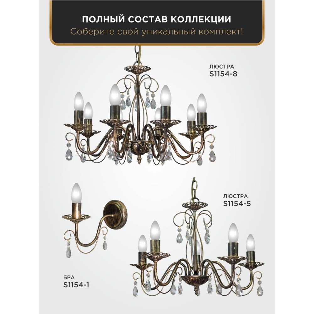 Ключевые слова для SEO: люстра, подвесная люстра, люстра хрусталь, люстра Петрасвет, люстра купить, люстра классическая, люстра неоклассика, люстра прованс, люстра с хрусталем, люстра Е14, люстра купить Россия, люстра недорого, люстра с золотой патиной, люстра для гостиной, люстра для спальни, люстра для столовой, люстра с регулируемой высотой, люстра с хрустальными подвесками, люстра с 5 лампами, люстра с 3750 лм, люстра с 7 годами гарантии, люстра Россия, купить люстру, купить люстру недорого. Люстра хрусталь 5 ламп Аврора черный с патиной золота российского производства ПЕТРАСВЕТ S1154-5, 5хЕ14 макс, 60Вт с хрустальными подвесками, цепь можно укоротить до 1 звена на 17 см, стиль - классика свечи, арматура - металл, цвет светильника- черный с патиной золота, размеры светильника (LxWxH) - 52x52x68, вес - 2 кг, Люстра на 2 включения, Люстра подвесная для натяжных потолков и освещение 15-20 м2 помещения в зависимости от мощности лампочек Е14, Люстра подвесная цепная 5 рожковая подходит для освещения комнат, кабинета, гостиной, спальни, столовой, детской, кухни, Заводская гарантия 7 лет, Люстра просто собирается, Люстра просто собирается по инструкции, Люстры пяти рожковые собраны и проверены на производстве, плотно упакован в коробке из тройного гофра картона, Лампочки светодиодные LED подбираются по следующим параметрам: для яркого освещения - 3 Вт на 1 м2 комнаты, для среднего - 2 Вт на 1 м2,