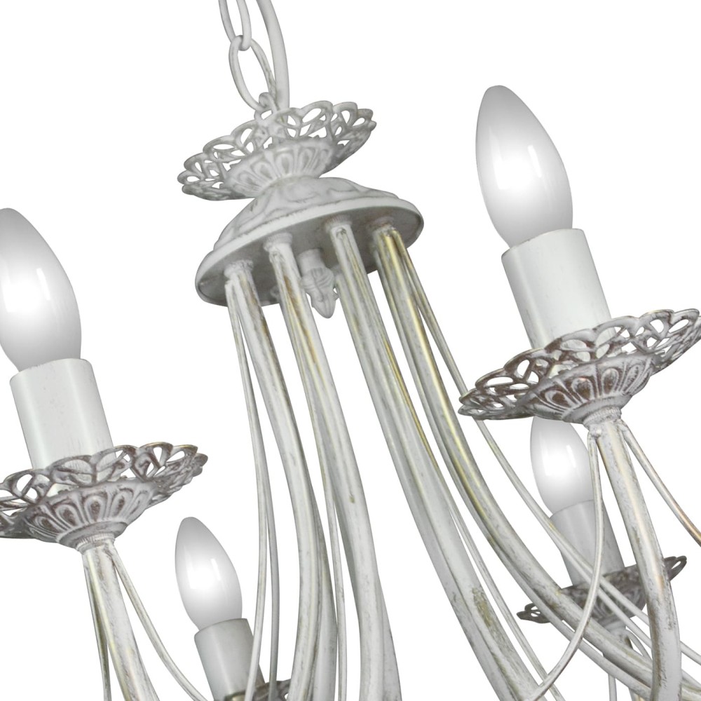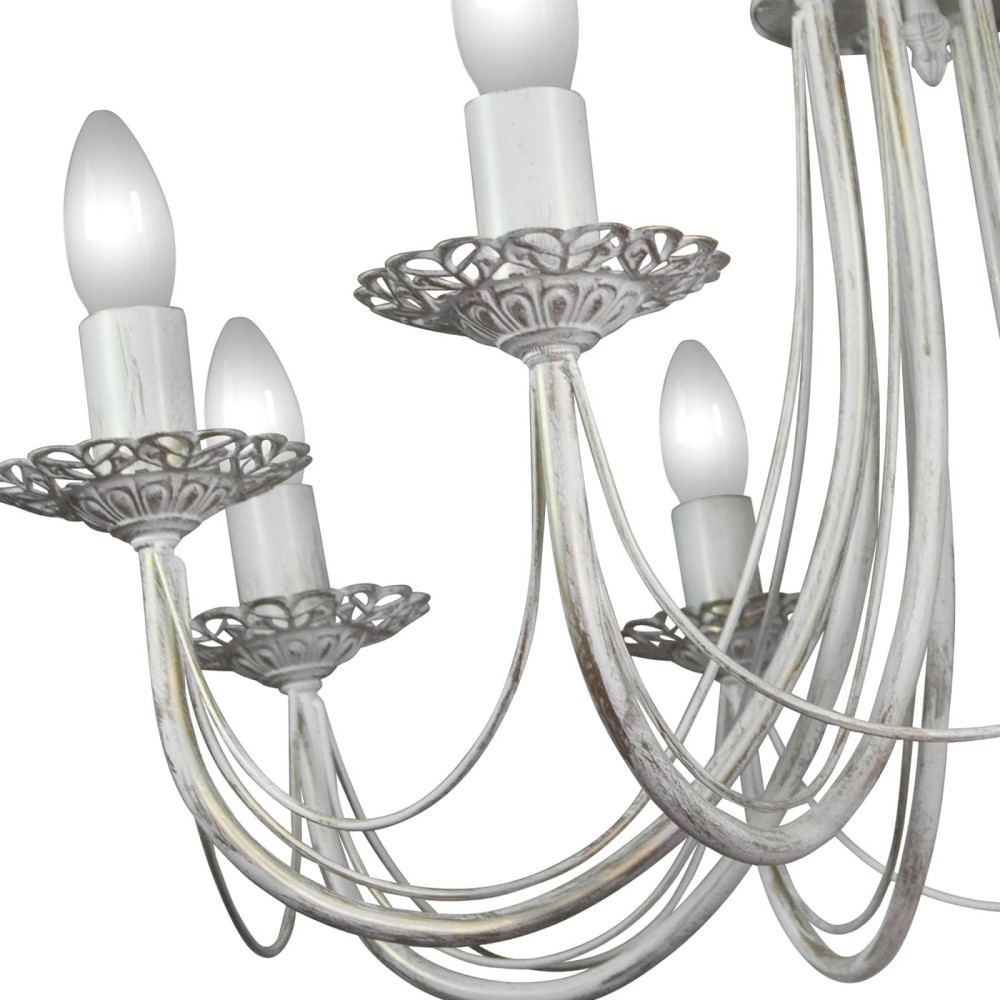 - Стиль: Эта люстра воплощает в себе сочетание стилей: классический, неоклассика и прованс. Её элегантные формы, благородный цвет и детали, такие как патина золота, создают атмосферу роскоши и уюта, характерную для этих стилей. Идеально впишется в интерьеры в стиле кантри, модерн и даже в современные пространства, где требуется акцент на классическую красоту.