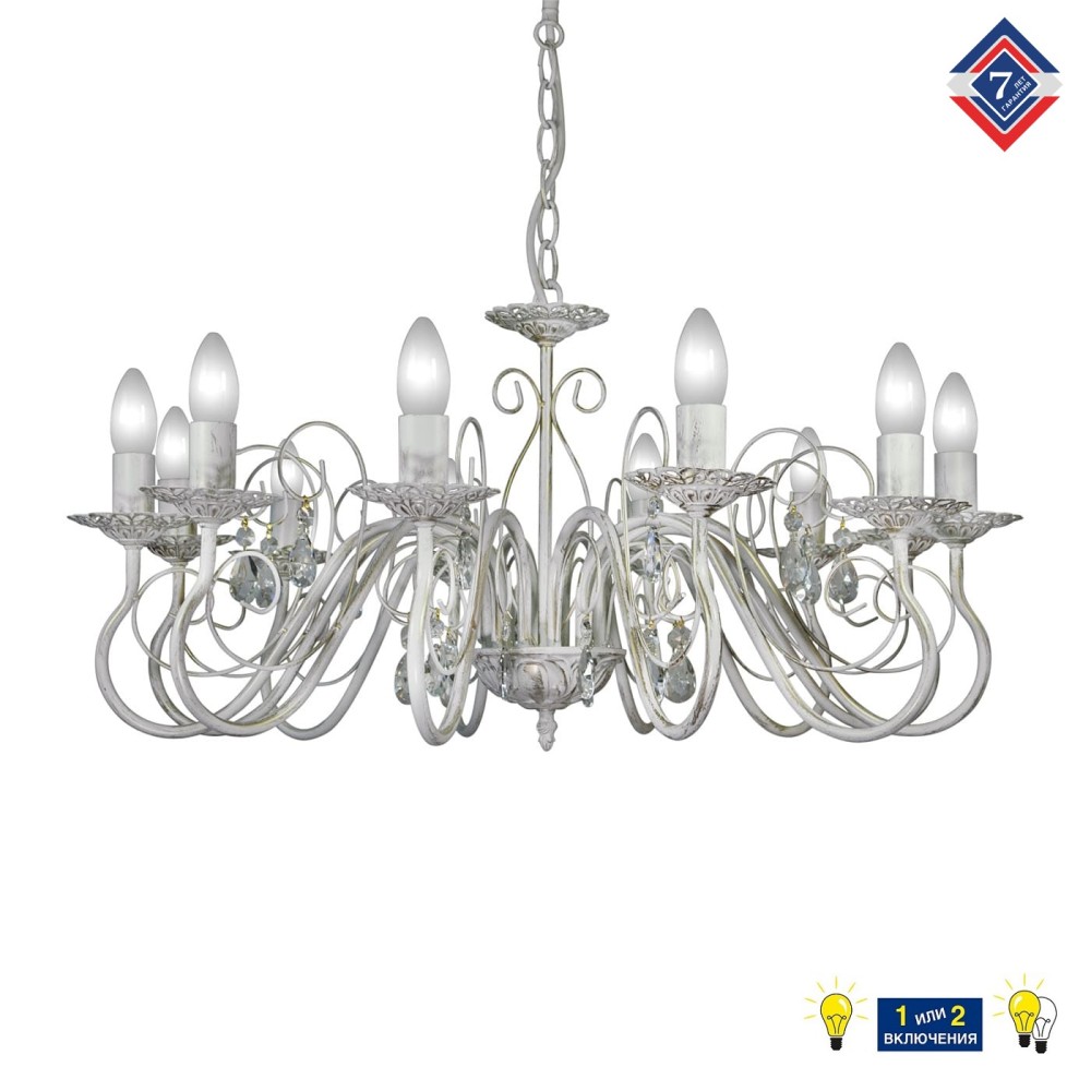 Инвестируйте в красоту и комфорт вашего дома! Люстра Петрасвет S1161-12 – это не просто осветительный прибор, это инвестиция в стиль, элегантность и уют вашего дома. Создайте атмосферу роскоши и благополучия с этой великолепной люстрой! Люстра подвесная российского производства ПЕТРАСВЕТ S1161-12, 12хЕ14 макс,60Вт, цепь можно укоротить до 1 звена на 17 см, стиль - классика свечи, арматура - металл, цвет светильника- белый с патиной золота, размеры светильника (LxWxH) - 73x73x71, вес - 3,5 кг, Люстра на 2 включения, Люстра подвесная для натяжных потолков и освещение 30 м2 помещения в зависимости от мощности лампочек Е14, Люстра подвесная цепная 12 рожковая подходит для освещения комнат, кабинета, гостиной, спальни, столовой, детской, кухни, Заводская гарантия 7 лет, Люстра просто собирается, Подвесной светильник на 12 лампочек плотно упакован в коробке из тройного гофра картона, Лампочки светодиодные LED подбираются по следующим параметрам: для яркого освещения - 3 Вт на 1 м2 комнаты, для среднего - 2 Вт на 1 м2,