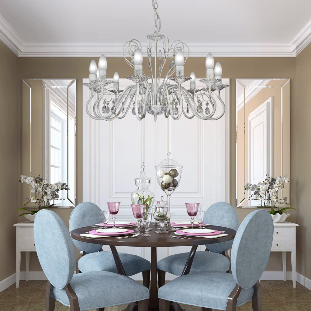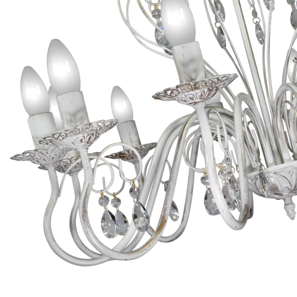 Люстра S1163-12 выполнена в стилях классики, неоклассики и прованса, что делает ее универсальной и подходящей для различных дизайнерских концепций. Прекрасное сочетание белого металла с патиной золота создает эффектный визуальный контраст, подчеркивая богатство деталей и благородство материалов. Материал светильника – прочный и долговечный металл, гарантирующий надежность и долгий срок службы. Белый цвет металла позволяет ему гармонично вписываться в любой интерьер, а патина золота добавляет ему роскоши и изысканности.