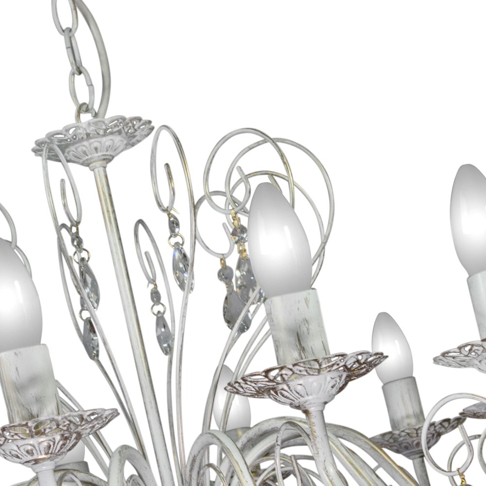 - Эффектный дизайн: Роскошное сочетание белого металла с патиной золота и хрустальных подвесок создает неповторимую атмосферу.