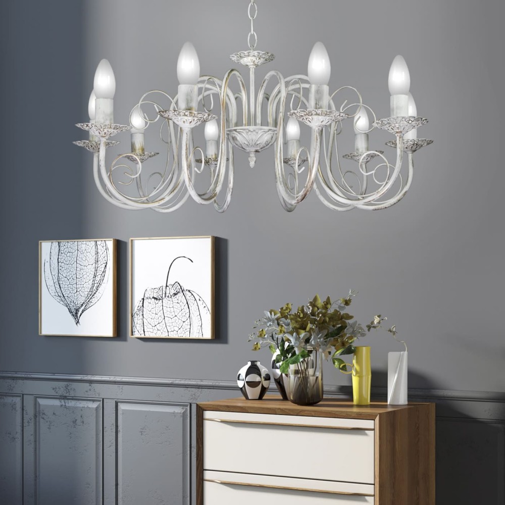 - Изысканный дизайн: Люстра выполнена в классическом стиле с элементами неоклассики и прованса. Белоснежный металлический каркас с патиной золота создает эффект роскоши и благородства. Декоративные хрустальные подвески добавляют очарования и подчеркивают элегантность дизайна. Хрусталь не только красиво выглядит, но и обеспечивает рассеянное, мягкое и комфортное освещение.