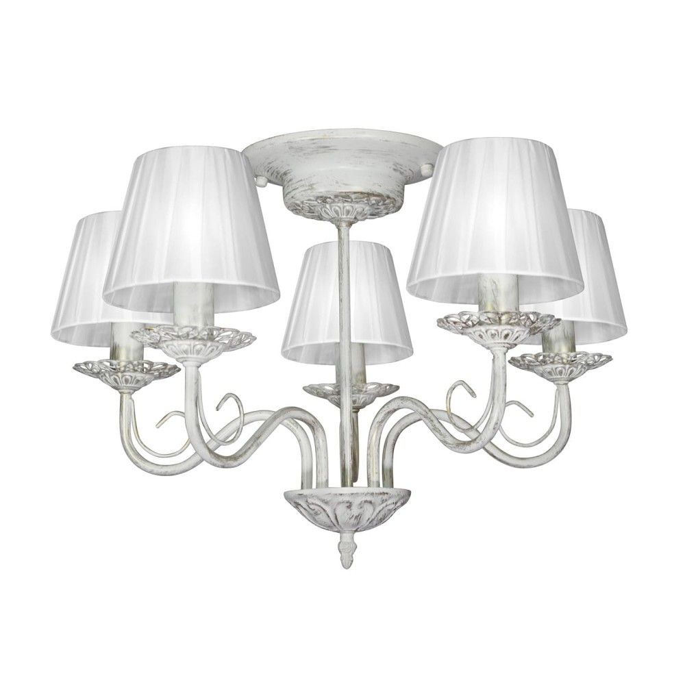 Люстра S1171-5 сочетает в себе элементы классики, неоклассики и прованса. Пятиламповый плафон с абажурами создает эффектное световое пятно, а патина золота придает светильнику благородный и роскошный вид. Абажуры, выполненные из ткани, мягко рассеивают свет, создавая уютную и расслабляющую атмосферу. Стиль люстры идеально подходит для интерьеров в классическом, неоклассическом и прованс стиле.