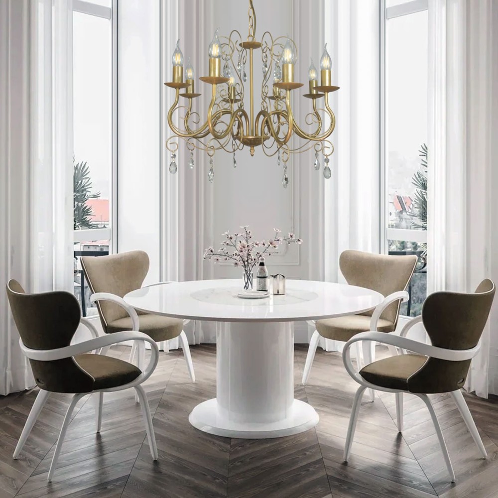 - Роскошный дизайн: Сочетание золота, хрусталя и классических элементов создает атмосферу уюта, элегантности и роскоши.