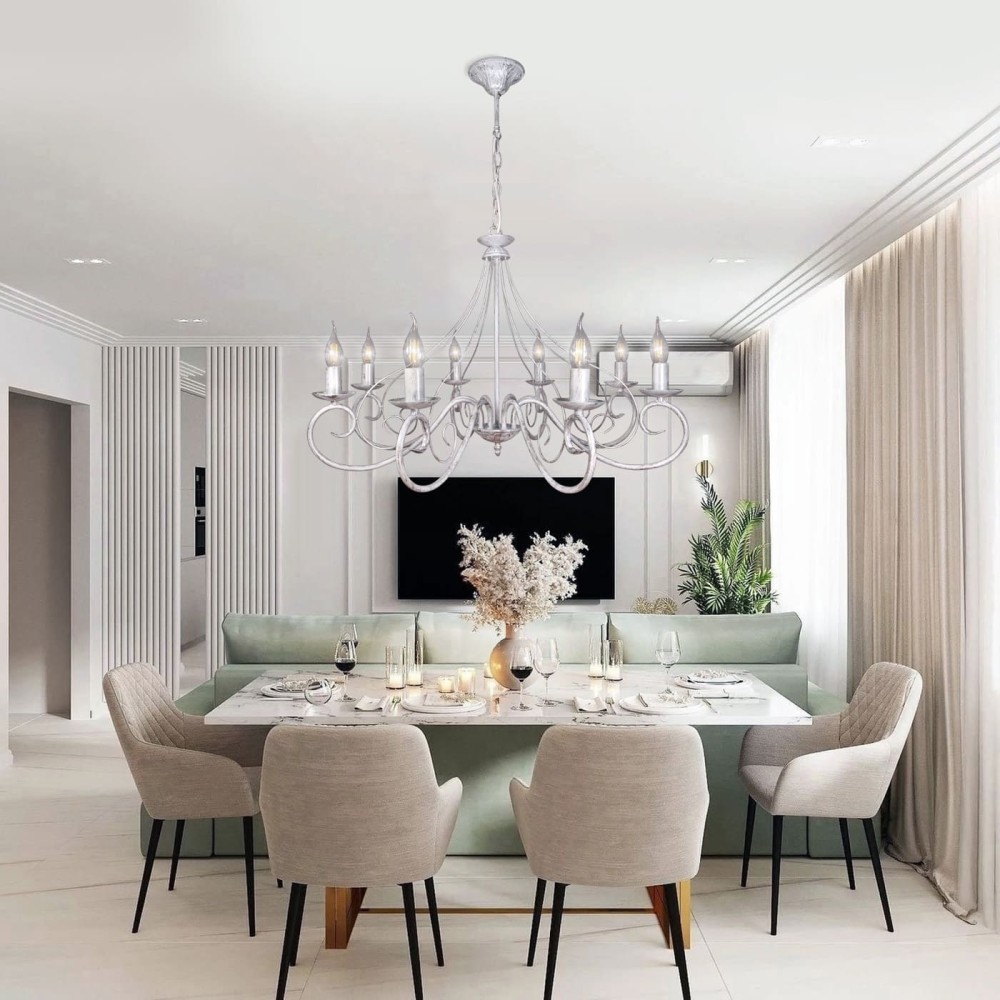 • Эстетичный дизайн: Благородная патина серебра и классический стиль делают эту люстру настоящим украшением интерьера. Она станет центральным элементом вашего дома, подчеркивая его красоту и изысканность.