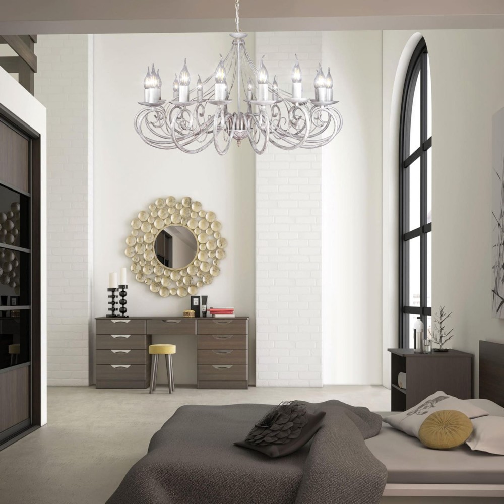- Изысканный дизайн: Люстра S1202-16 сочетает в себе элементы классики, неоклассики и прованса, создавая неповторимый стиль. Белый цвет светильника с патиной золота придает ей благородный и утонченный вид, идеально сочетаясь с различными стилями интерьера. Массивная конструкция и декоративные элементы подчеркивают ее роскошный характер.