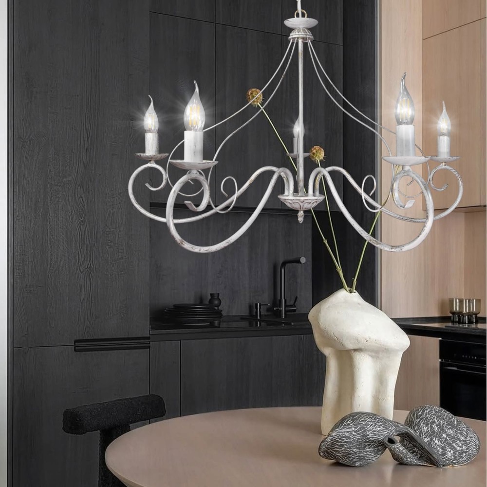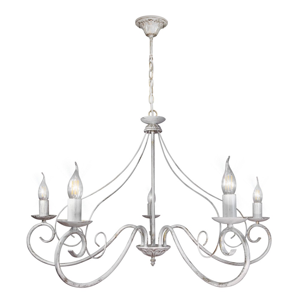 S1202-5 – это воплощение неоклассики, прованса и классики. Ее элегантный дизайн с акцентом на патину золота и белом металле придает ей благородный и утонченный вид. Сочетание этих материалов создает эффектный контраст, который подчеркивает красоту интерьера. Люстра выполнена из высококачественного металла, что гарантирует ее прочность и долговечность. Белый цвет основания и патинированное золото плафона придают ей особый шарм и добавляют теплоту.