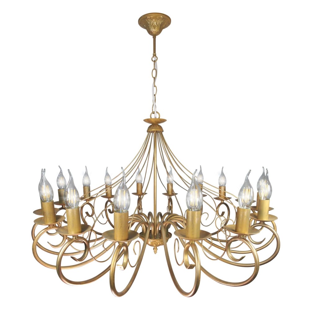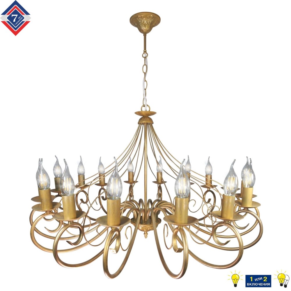 Эта люстра – не просто источник света, это инвестиция в красоту и комфорт вашего дома. Почувствуйте себя как в королевском дворце! Люстра подвесная большая 16 ламп золото прованс российского производства ПЕТРАСВЕТ S1202-16, 16хЕ14 макс, 60Вт, цепь можно укоротить до 1 звена на 17 см, стиль - классика свечи, арматура - металл, цвет светильника -золото с патиной золота, размеры светильника (LxWxH) - 85x85x85, вес - 6 кг, Люстра на 2 включения, Люстра подвесная и для натяжных потолков и освещение 24-32 м2 помещения в зависимости от мощности лампочек Е14, Люстра подвесная цепная 16 рожковая с хрусталем подходит для освещения комнат, кабинета, гостиной, спальни, столовой, детской, кухни, Заводская гарантия 7 лет, Люстра просто собирается, Подвесной светильник на 16 лампочек произведен и проверен на производстве, плотно упакован в коробке из тройного гофра картона, Упаковка выдерживает и гарантирует сохранность содержимого при падении на дно и ребро коробки с высоты 110 см, Лампочки светодиодные LED подбираются по следующим параметрам: для яркого освещения - 3 Вт на 1 м2 комнаты, для среднего - 2 Вт на 1 м2, В случае боя или не комплекта, свяжитесь с нами мы вышлем Вам новый в день обращения, Можно докупить абажур, который крепится на лампочку,