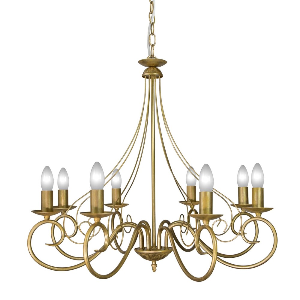 Люстра S1203-8 поражает своим масштабом и детализацией. Благодаря ширине 83 см и высоте 68-85 см, она станет настоящим акцентом, заполняя пространство своим великолепием. Основным материалом светильника является прочный и долговечный металл, обработанный в технике патинирования золота, что придает ему благородный и винтажный вид. Эта техника позволяет добиться эффекта состаривания, добавляя светильнику неповторимый шарм и ощущение истории. Золотая патина создает игру света и тени, делая люстру особенно привлекательной.