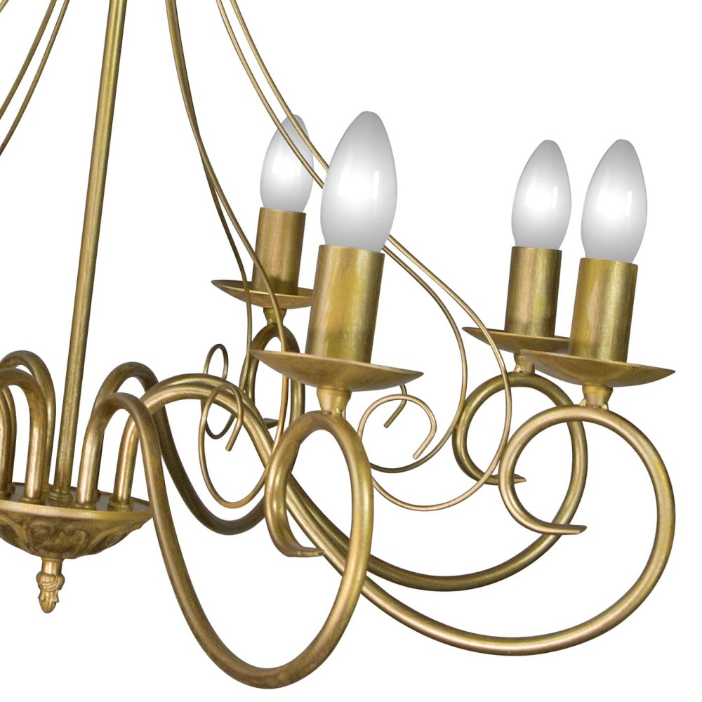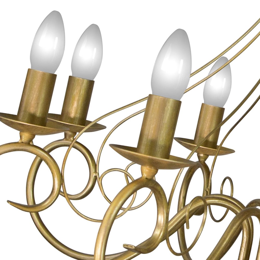 - Особенности: Использование техники патинирования золота создает уникальный и неповторимый эффект, делая люстру настоящим произведением искусства. Большой размер и количество ламп обеспечивают достаточное освещение для помещений среднего размера.