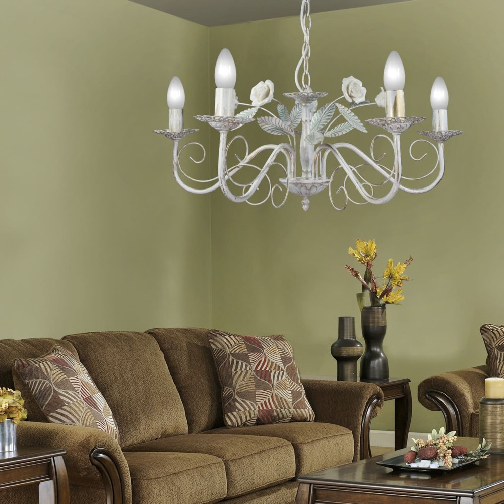 Люстра S1222-5 сочетает в себе элементы классического, современного и флористического стилей, что делает ее универсальной и подходящей для различных интерьерных решений. Изящные розы белые и хрустальные подвески, украшающие плафон, добавляют светильнику неповторимый шарм и романтическую атмосферу. Использование хрусталя не только придает светильнику визуальную привлекательность, но и обеспечивает превосходное рассеивание света, создавая мягкое и уютное освещение.