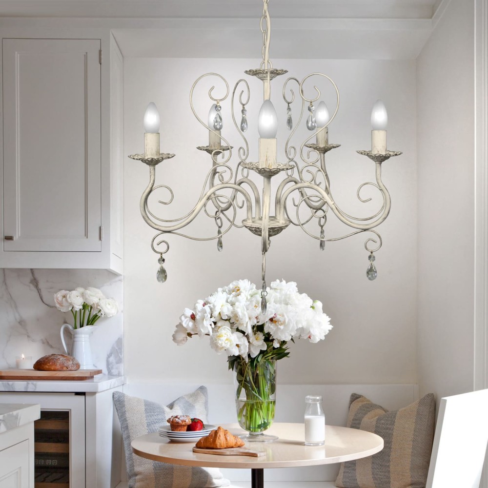 Люстра S1226-5 сочетает в себе элементы классического стиля, неоклассики и прованса, что делает ее универсальной и подходящей для различных интерьерных решений. Ее широкий корпус, выполненный в бежевом цвете с патиной золота, создает ощущение простора и роскоши. Пятиламповый плафон, украшенный хрустальными подвесками, добавляет светильнику изысканности и блеска. Хрустальные подвески не только красиво переливаются светом, но и создают уникальную игру теней, добавляя интерьеру глубину и объем. Их форма и размер тщательно продуманы, чтобы обеспечить равномерное распределение света и создать желаемый эффект.