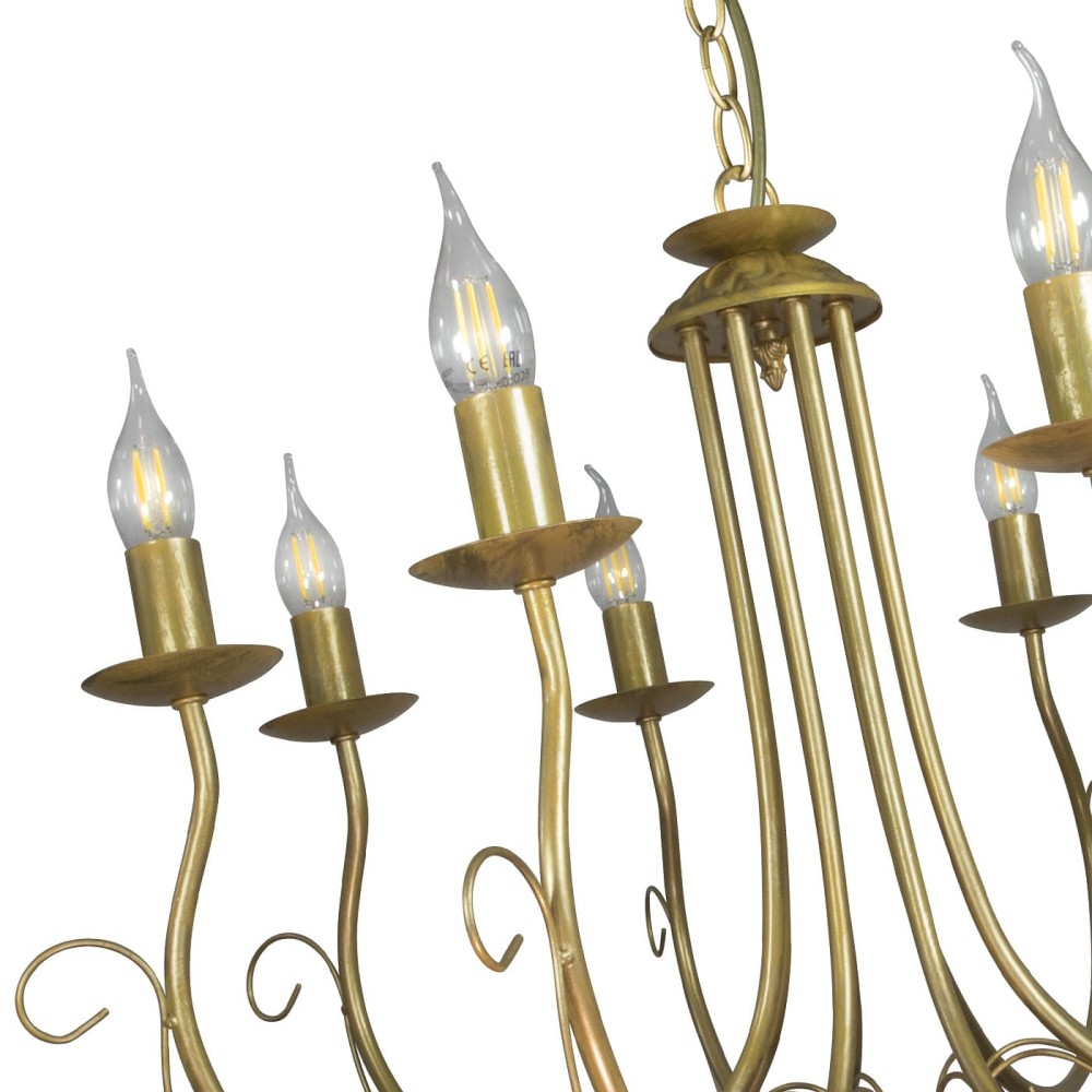 Люстра S1227-8 выполнена из высококачественного металла, покрытого патиной золота, что придает ей неповторимый блеск и глубину. Белый цвет основания подчеркивает элегантность конструкции и гармонично вписывается в различные стилистические решения. Массивное основание шириной 12 см обеспечивает устойчивость и надежность конструкции. Плавные изгибы и декоративные элементы плафона создают ощущение роскоши и утонченности. Отсутствие отдельного материала для плафона подчеркивает его структуру и позволяет сосредоточиться на изысканных деталях.
