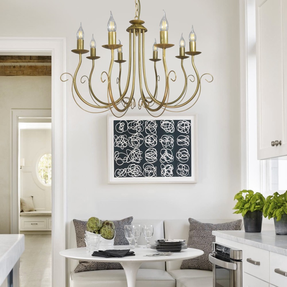 - Широкий выбор: Патиновая золотая отделка в сочетании с белым основанием делает эту люстру прекрасным дополнением к интерьеру в различных цветовых гаммах.