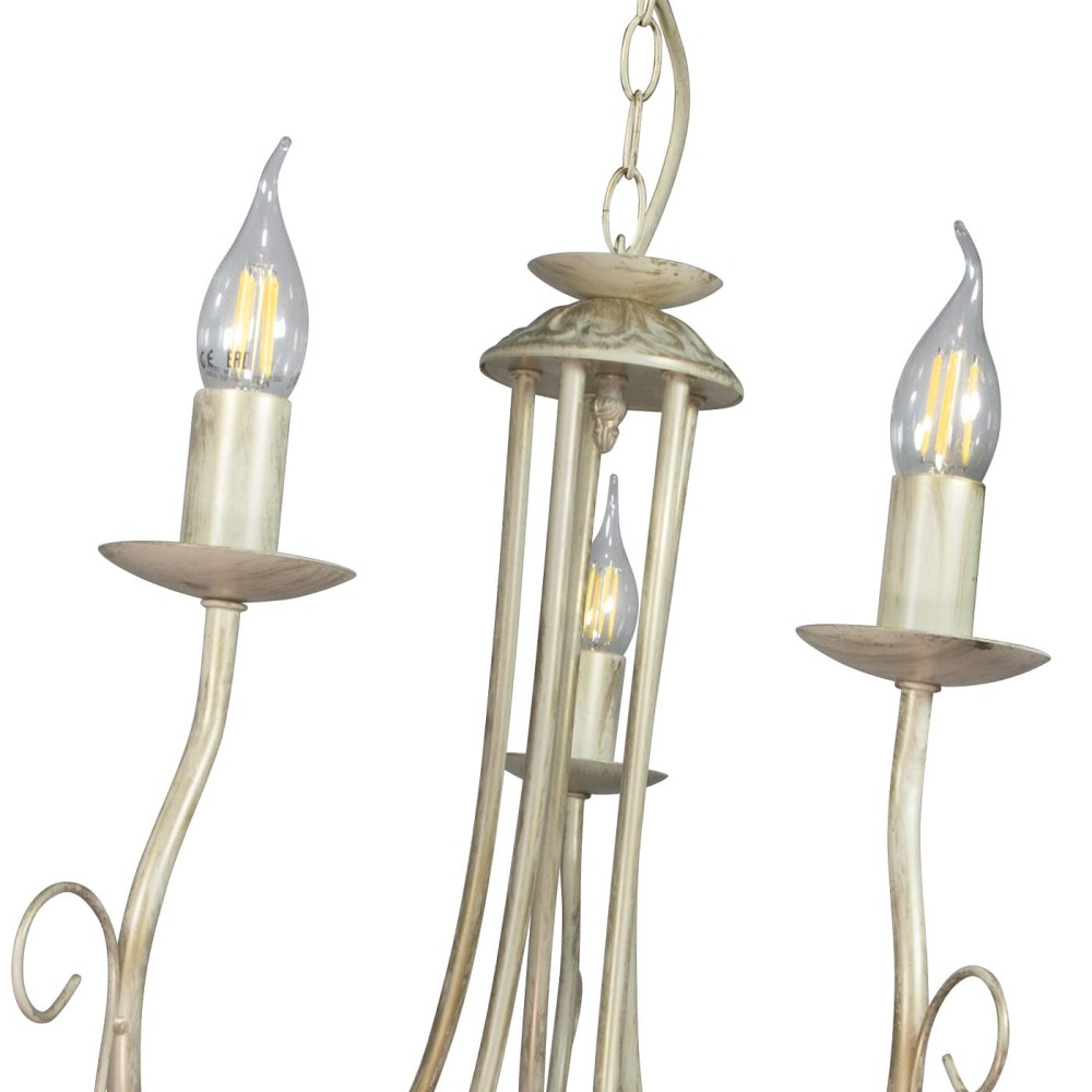 Люстра S1228-5 воплощает в себе идеальное сочетание стилей классики, неоклассики и прованса. Ее белоснежный цвет с патиной золота придает ей благородный и утонченный вид, гармонично вписываясь в различные интерьерные решения. Массивное металлическое основание, выполненное в классическом стиле, подчеркивает ее надежность и долговечность. Патиновая золотая отделка придает светильнику глубину и текстуру, создавая эффект роскоши и изысканности. Продуманная форма плафона обеспечивает равномерное распределение света, создавая комфортное и приятное освещение. Использование высококачественных материалов гарантирует долгий срок службы и сохранение первоначального внешнего вида. Отсутствие отдельного материала плафона позволяет сосредоточиться на элегантном дизайне и функциональности.