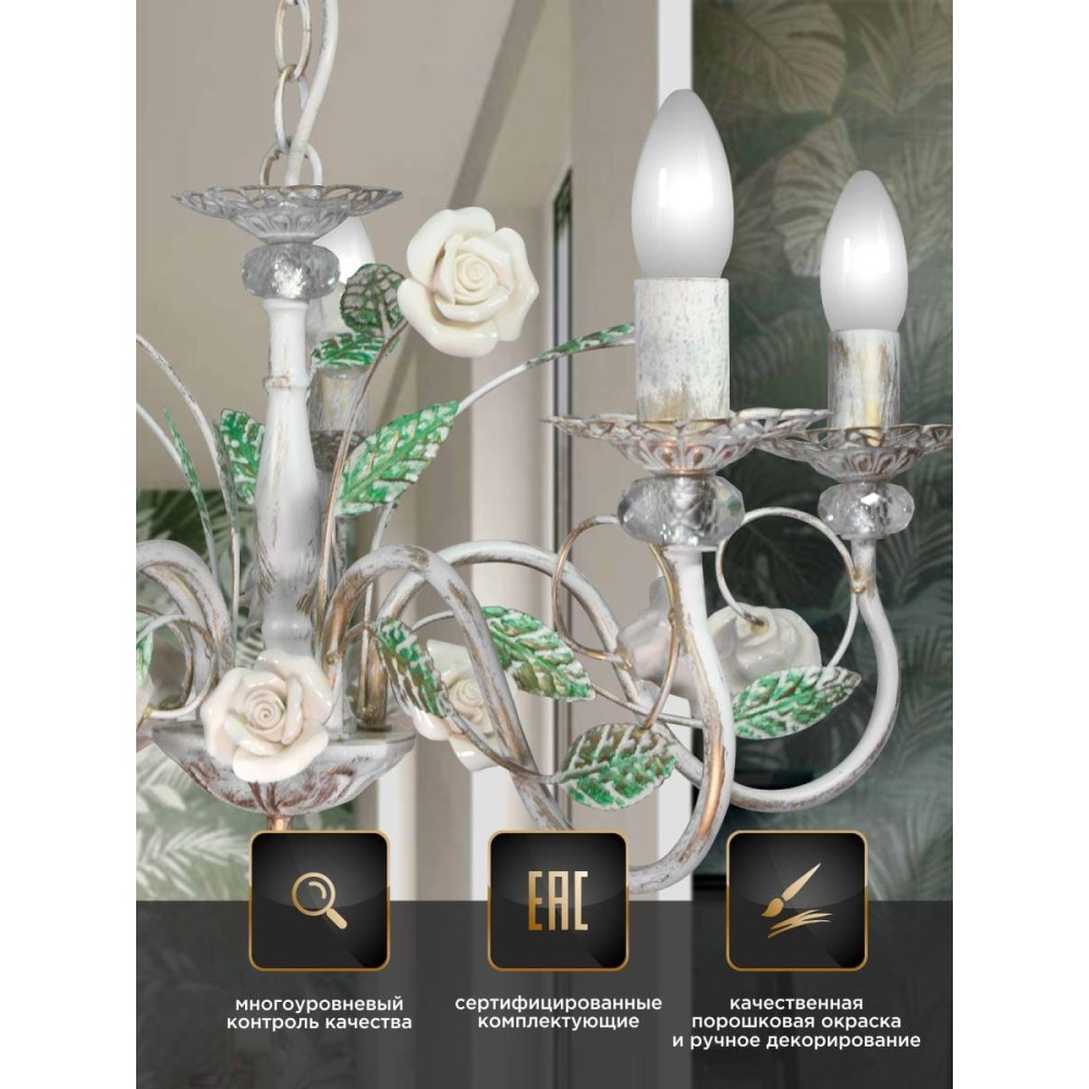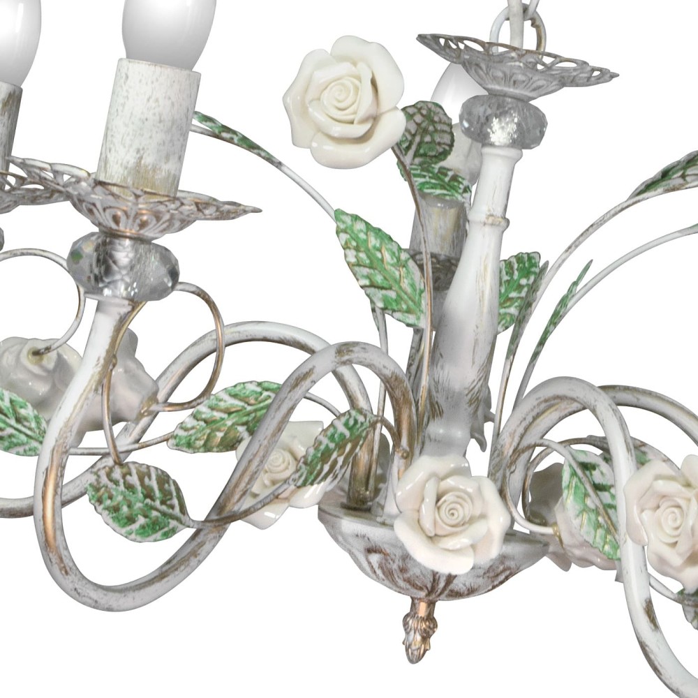 - Роскошный Дизайн: Люстра S1230-5 – это воплощение флористической классики. Ее дизайн включает в себя изящные белые розы, хрустальные вставки и общую элегантную форму, создающую неповторимую атмосферу. Сочетание патины золота и белого цвета придает светильнику благородный и утонченный вид, гармонично вписываясь в различные стили интерьера – от классики до современного минимализма.