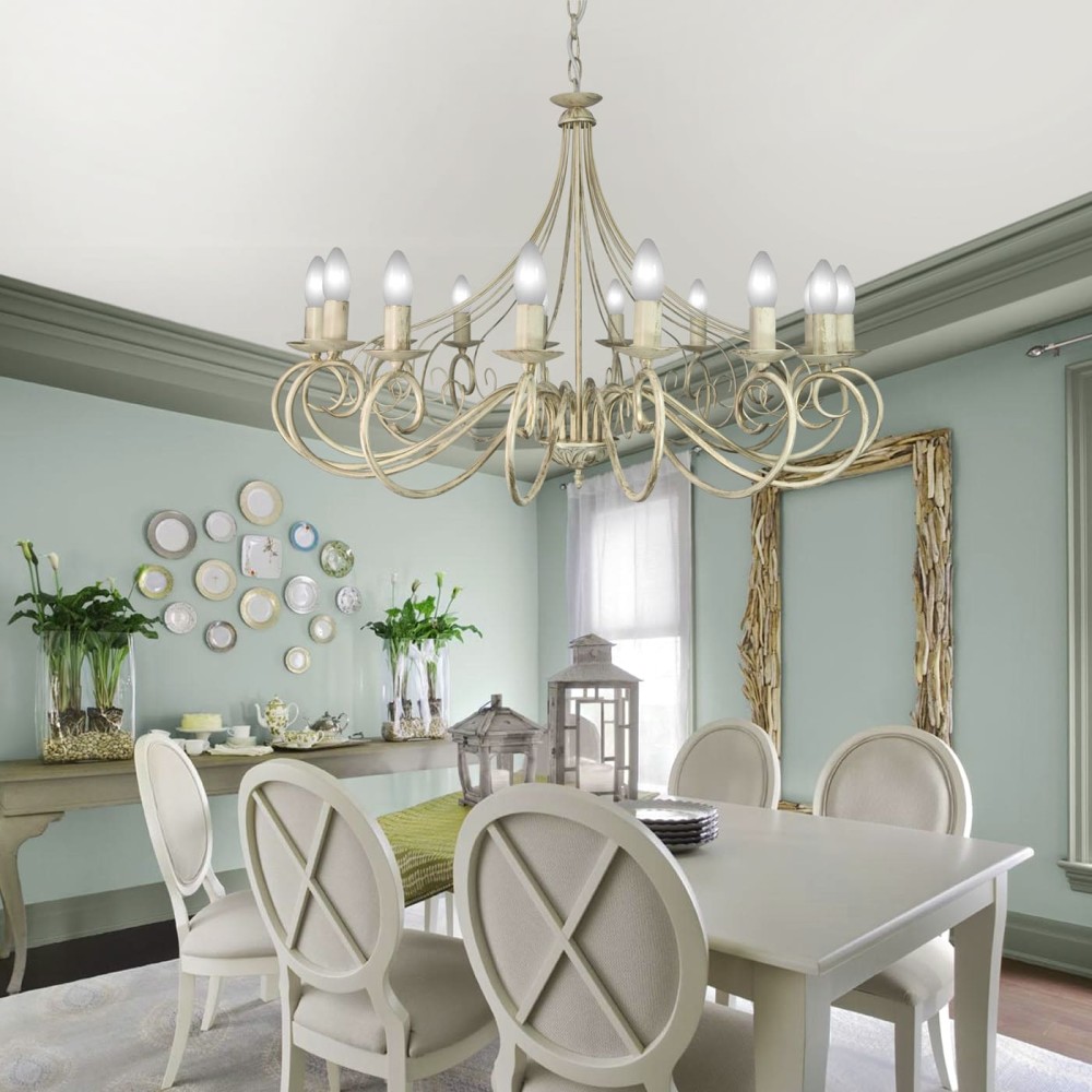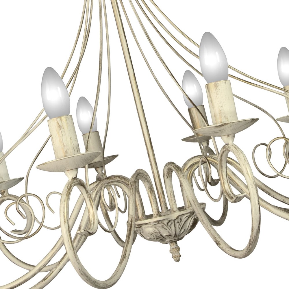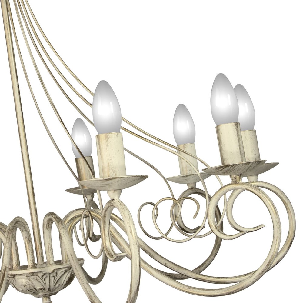 - Роскошный дизайн и материалы: Люстра выполнена из металла, окрашенного в элегантный цвет золота с патиной. Такая отделка придает ей благородный и винтажный вид, идеально сочетаясь с классическим, неоклассическим и прованс стилями интерьера. Массивное металлическое основание подчеркивает статусность и долговечность светильника.
