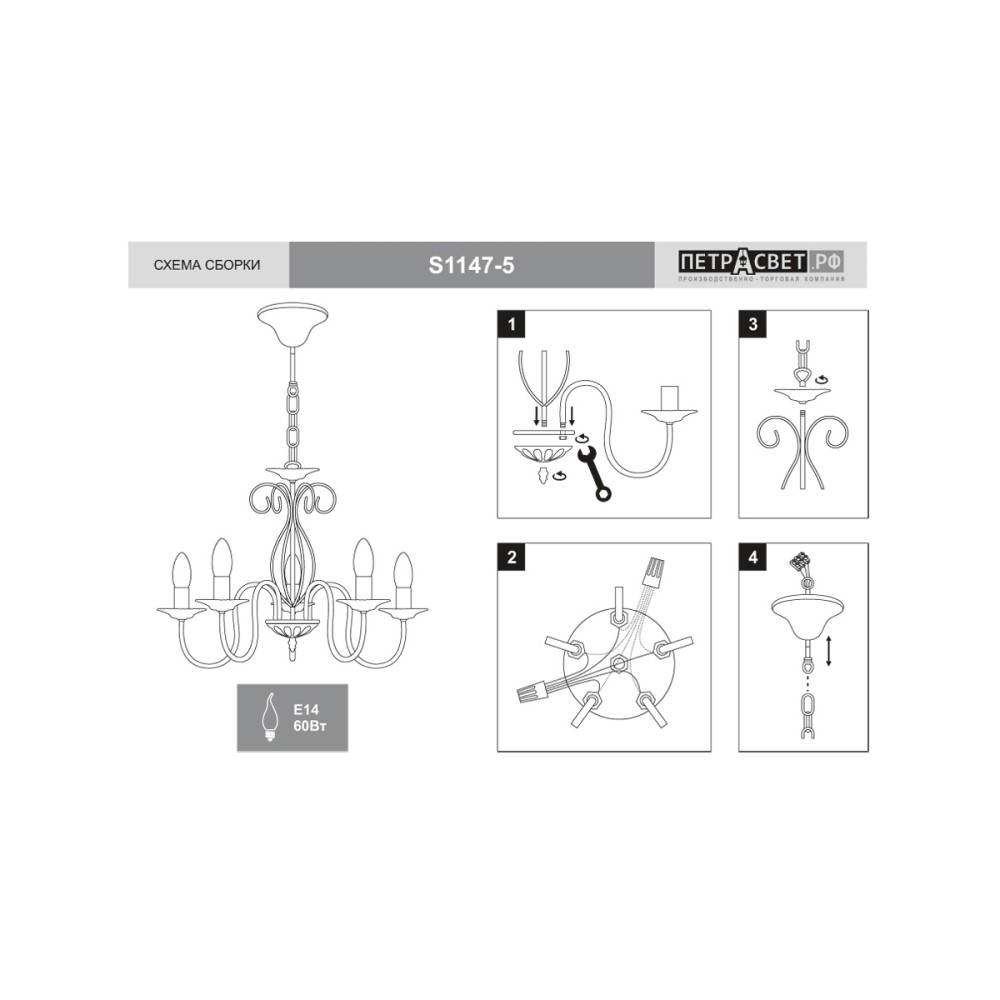 Люстра S1255-5 совместима с различными типами ламп, что дает вам возможность выбрать оптимальный вариант освещения в соответствии с вашими потребностями и предпочтениями. Вы можете использовать лампы накаливания для создания теплого и уютного освещения, светодиодные лампы для экономии электроэнергии и долговечности, или люминисцентные лампы, которые обеспечивают яркое и равномерное освещение. Универсальность в выборе лампы позволяет адаптировать освещение под любые задачи и настроение.