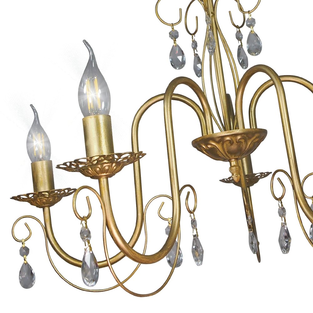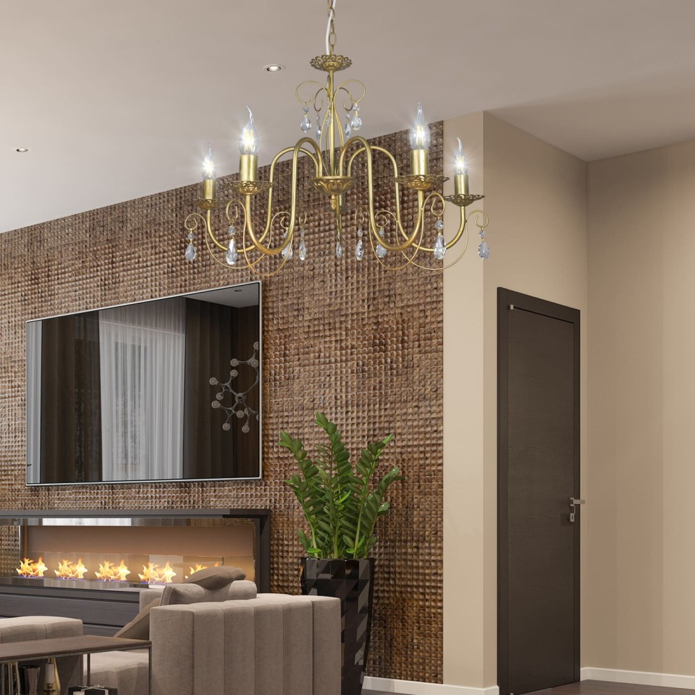 Люстра S1255-5 – это воплощение классической элегантности с нотками неоклассики и прованса. Хрустальные подвески, выполненные в форме капель, добавляют ей изысканности и блеска. Патиновая золотая отделка придает ей благородный вид и создает эффект глубины. Стиль люстры идеально сочетается с различными интерьерными решениями, от роскошных особняков до уютных загородных домов. Она станет прекрасным дополнением к столовой, гостиной, спальне или прихожей.